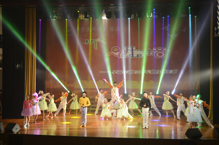 若想成为一名优秀的幼儿教师,绘画是必备的专业技能,接下来的是刘姝玲老师指导的绘画作品展示。几个同学分工合作组成了一幅十米长的的国画长卷,让人眼前一亮。可见,从构思、酝酿、到起稿、画稿,其中浸润了师生的多少心血汗水。同样,同学们的彩铅画和儿童话更让人目不转睛。流畅细腻的笔触,熟练的画工,都令人赞叹。接着,是曾卫东老师指导的大气恢弘的藏舞《扎西德勒》。传统的藏族服饰、充满民族风情的音乐伴奏、绚丽的舞台灯光,让人仿佛置身高原,感受了一番藏族同胞的豪迈大气、热情好客,也深深感受了民族团结和友爱的重要。最后,由1303、1305全体同学带来的大合唱《校园的早晨》、《美丽中国梦》,由朱明老师指导,更为汇报添上了一笔热烈活力的色彩。从他们的歌声中,同学们仿佛听到了幼师梦是我们的梦,是每一个幼专学子的青春梦,而中国梦是幸福中国人共同的憧憬,是中国人心中最美的愿景。