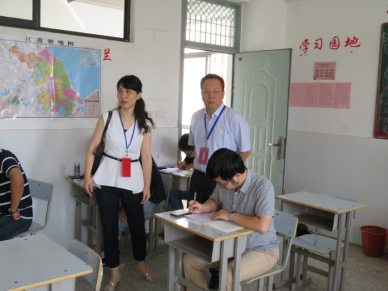国家人事考试中心副主任朱彦鹏、省人事考试中心副主任朱波、省住建厅执业资格考试注册中心副主任王宇旻、市城乡建设局副书记、副局长顾慧春一行巡查了全部考场,学校党委书记刘毓航、校长姜统华陪同。