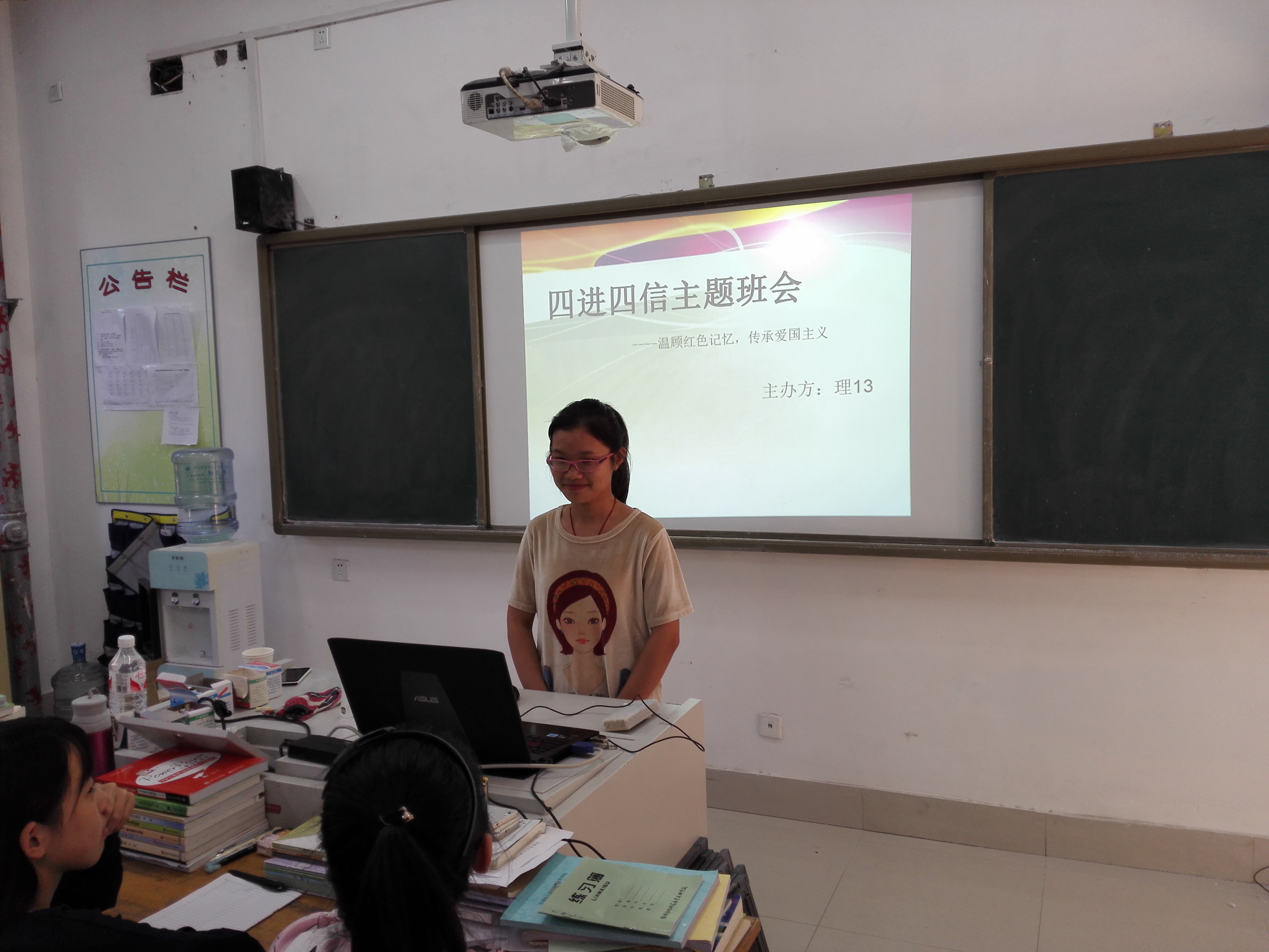 为了将学习宣传贯彻习近平总书记系列重要讲话精神持续引向深入,以“四进”为手段,以“四信”为目标,通过“进支部、进社团、进网络、进团课”,引导广大青年学生和团干部进一步牢固树立对党的科学理论的信仰、坚定走中国特色社会主义道路实现“中国梦”的信念,我校各班级在19日下午二节课下开展了学习总书记“四进四信”重要讲话的主题班会。