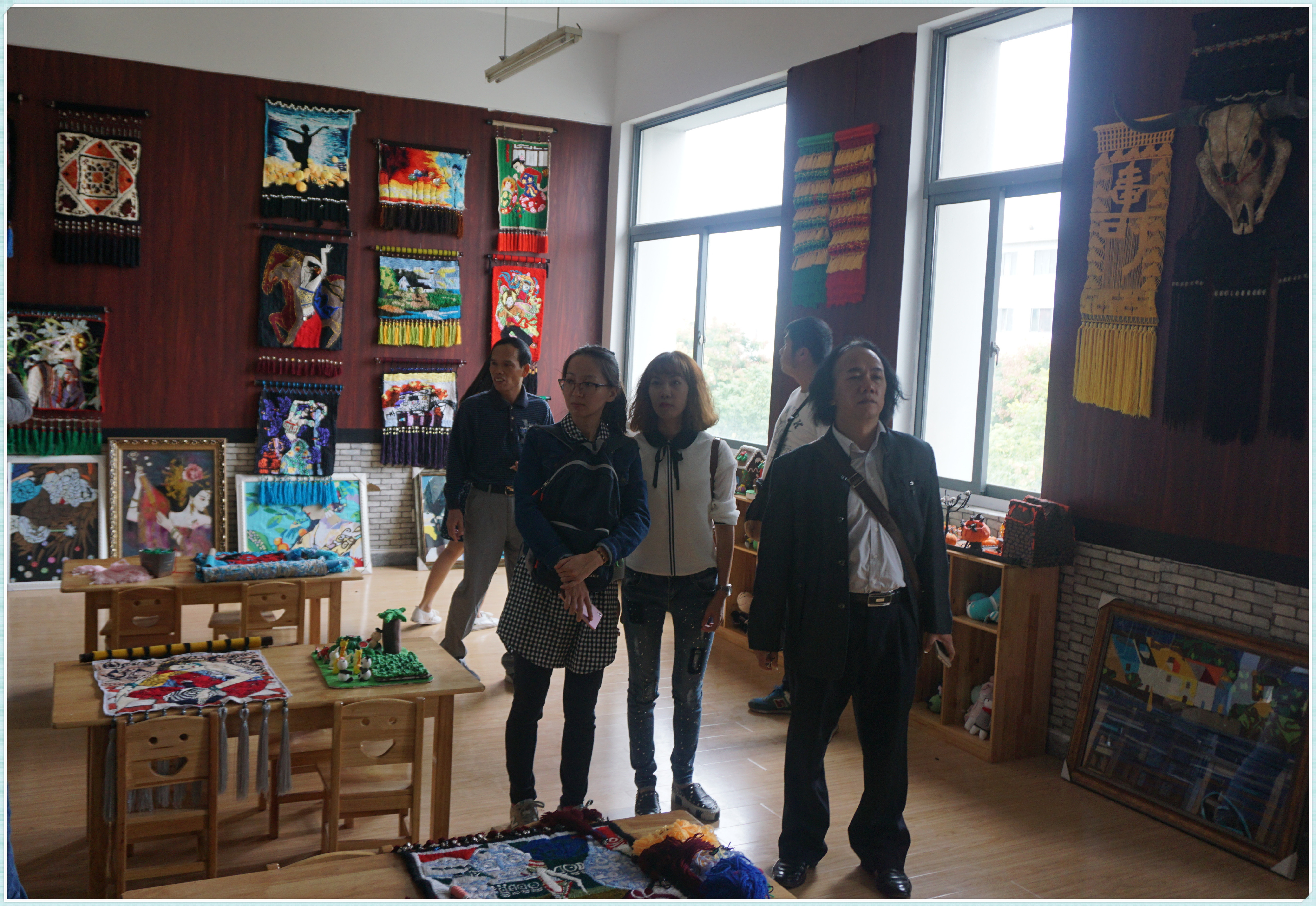 随后,广西钦州市合浦师范学校的领导老师进行了对口随堂听课,并参观考察了校园环境,观看了学生画作展览和汇报演出。