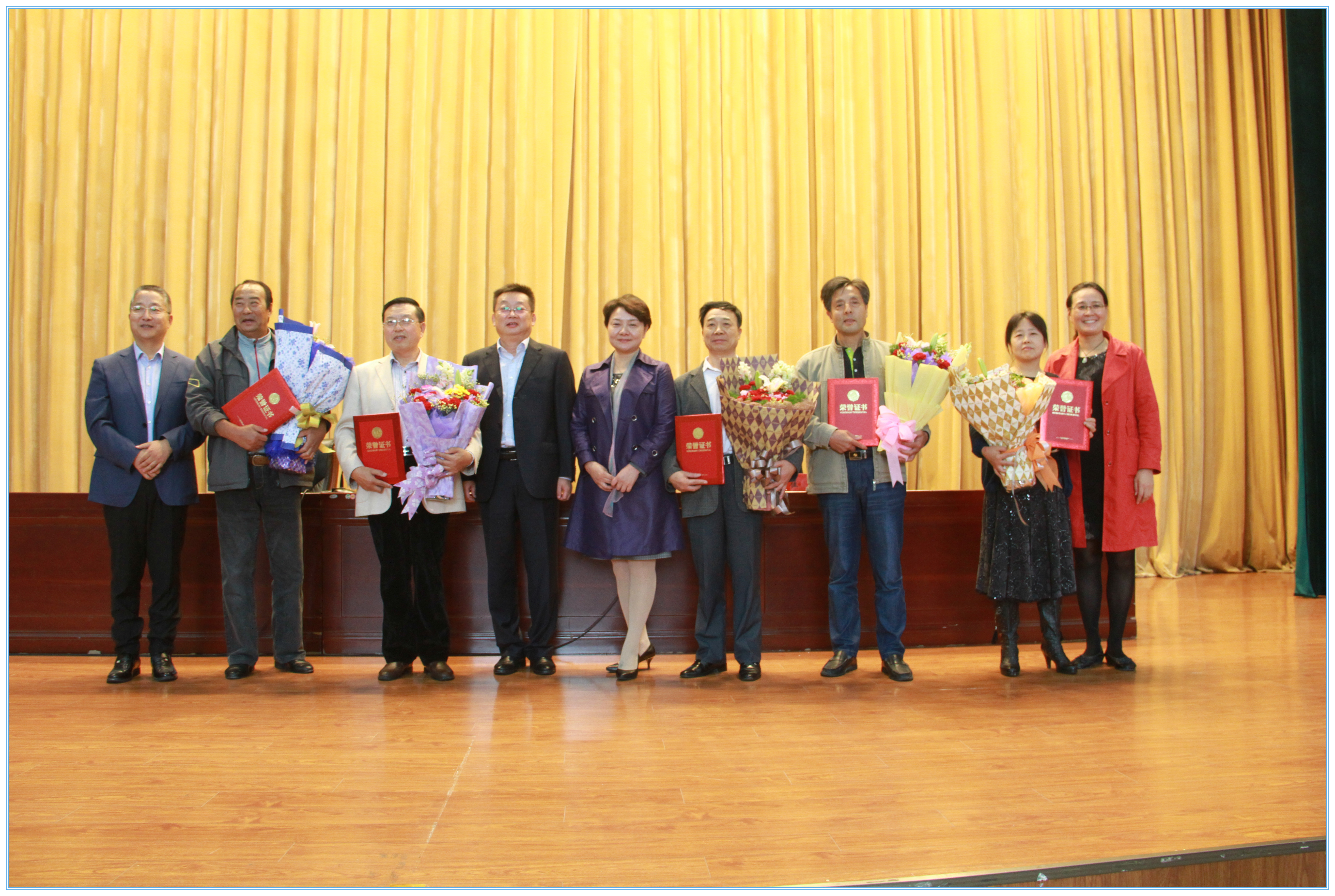 刘书记亲自为2016年新退休职工代表颁发光荣退休证书,学生们为退休职工代表鲜花,表达祝福。