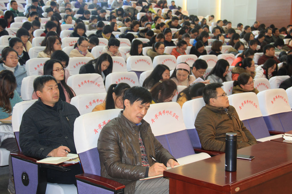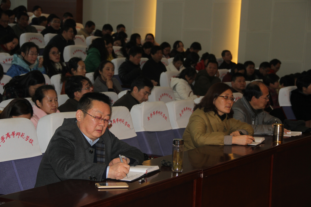 12月19日下午,江南大学人文学院、田家炳教育科学学院院长陈明选教授应邀来我校作了主题为“‘互联网+’时代的教育创新——围绕理解的翻转课堂”的专题讲座。校领导姜统华、徐伯静、崔霞出席,与我校全体教学人员一起现场聆听了讲座。讲座由校领导孙永龙主持。
