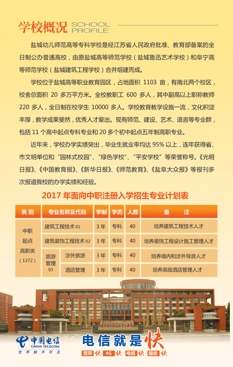 盐城幼专2017年面向中职注册入学招生简章