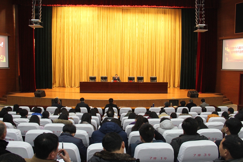 1月13日下午,市委讲师团成员、市教育局局长殷勇莅临我校宣讲党的十八届六中全会和省市党代会精神。会议由校长姜统华主持。全校党员、中层以上干部出席听取了报告。