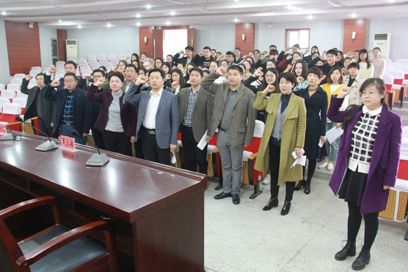 59位新党员在组织人事处唐晓红同志的领誓下,面向鲜红的党旗宣誓,铮铮誓言体现了新党员对党的忠诚与热爱。