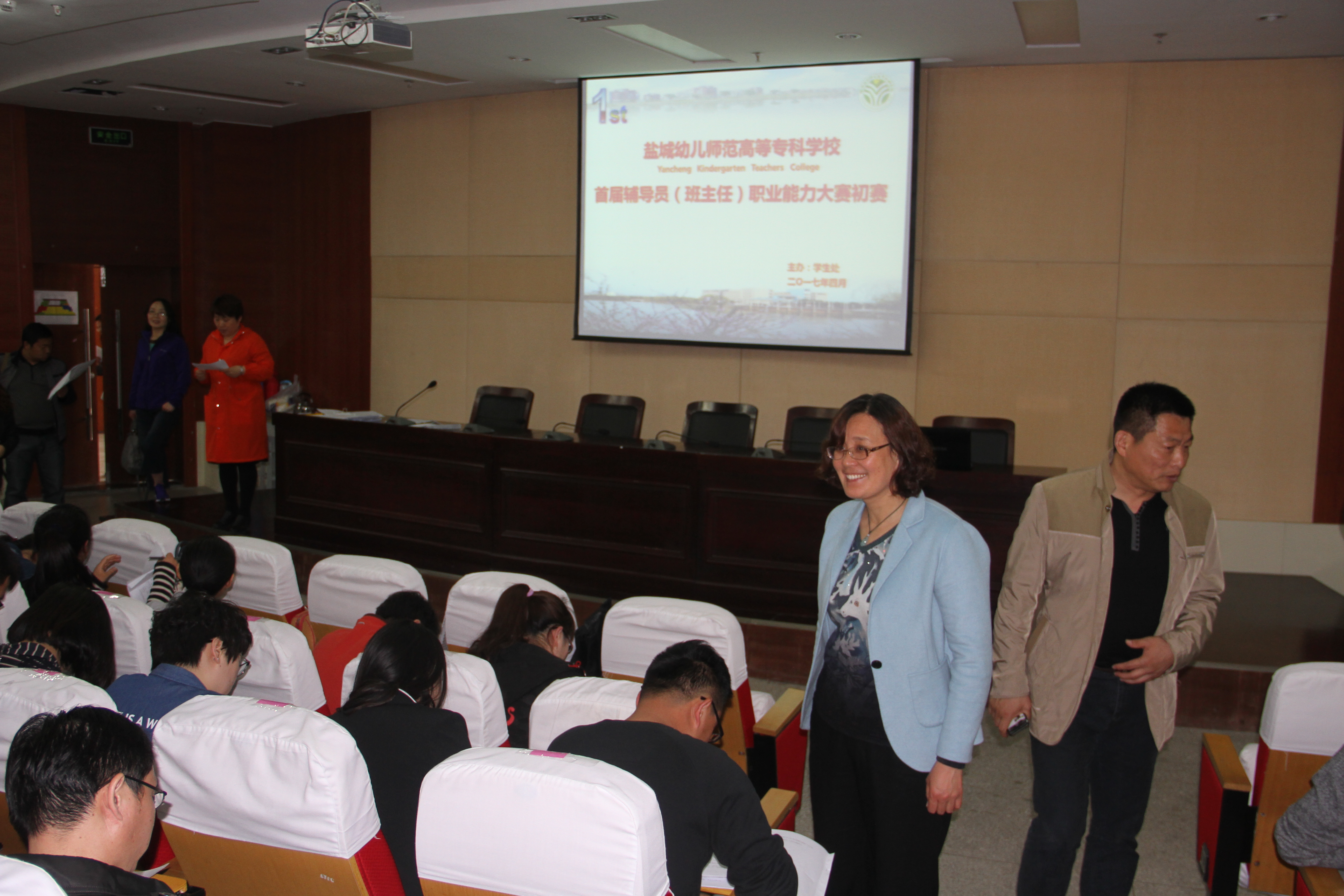 4月26日下午,初赛正式开始。初赛阶段由笔试和主题班会设计两个环节组成。笔试由校外专家命题。全校200多名辅导员(班主任)参加了笔试,教务处、学生处、团委、各院系相关领导担任本次监考。老师们认真答题,沉着应战,一会低头沉思,一会奋笔疾书,表现了较高的教师素养。校党委书记刘毓航、校领导崔霞亲临现场,给参赛老师加油鼓劲。