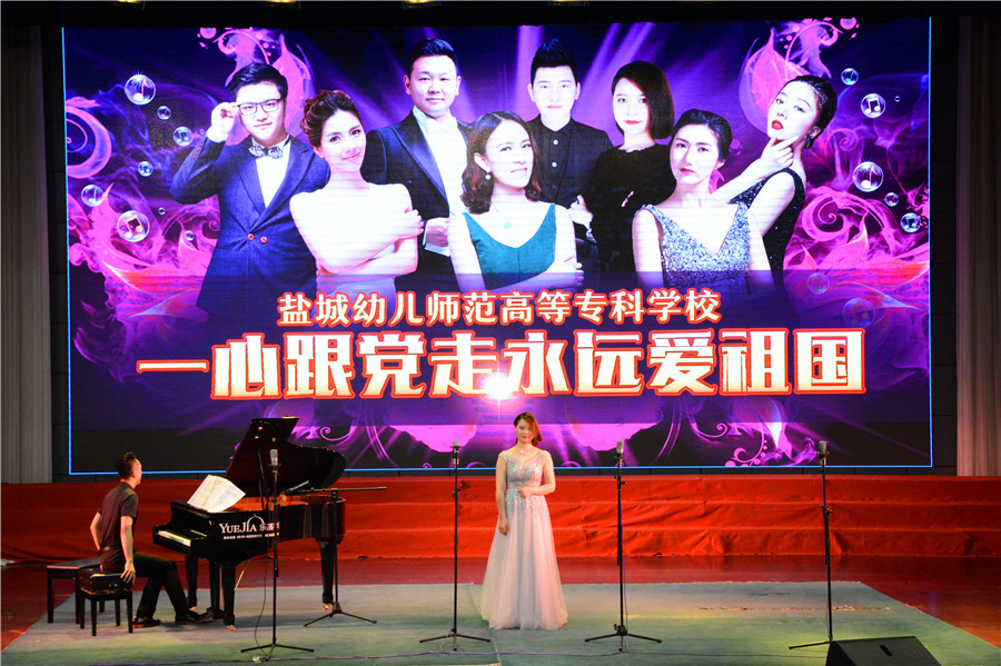 5月24日下午4时30分,“一心跟党走 永远爱祖国”青年教师独唱音乐会在盐幼专北校区鲁迅艺术剧院隆重举行。校党委书记刘毓航、校领导崔霞、杨桂春、仇玉文以及南北校区600余名师生观看了本次演出。