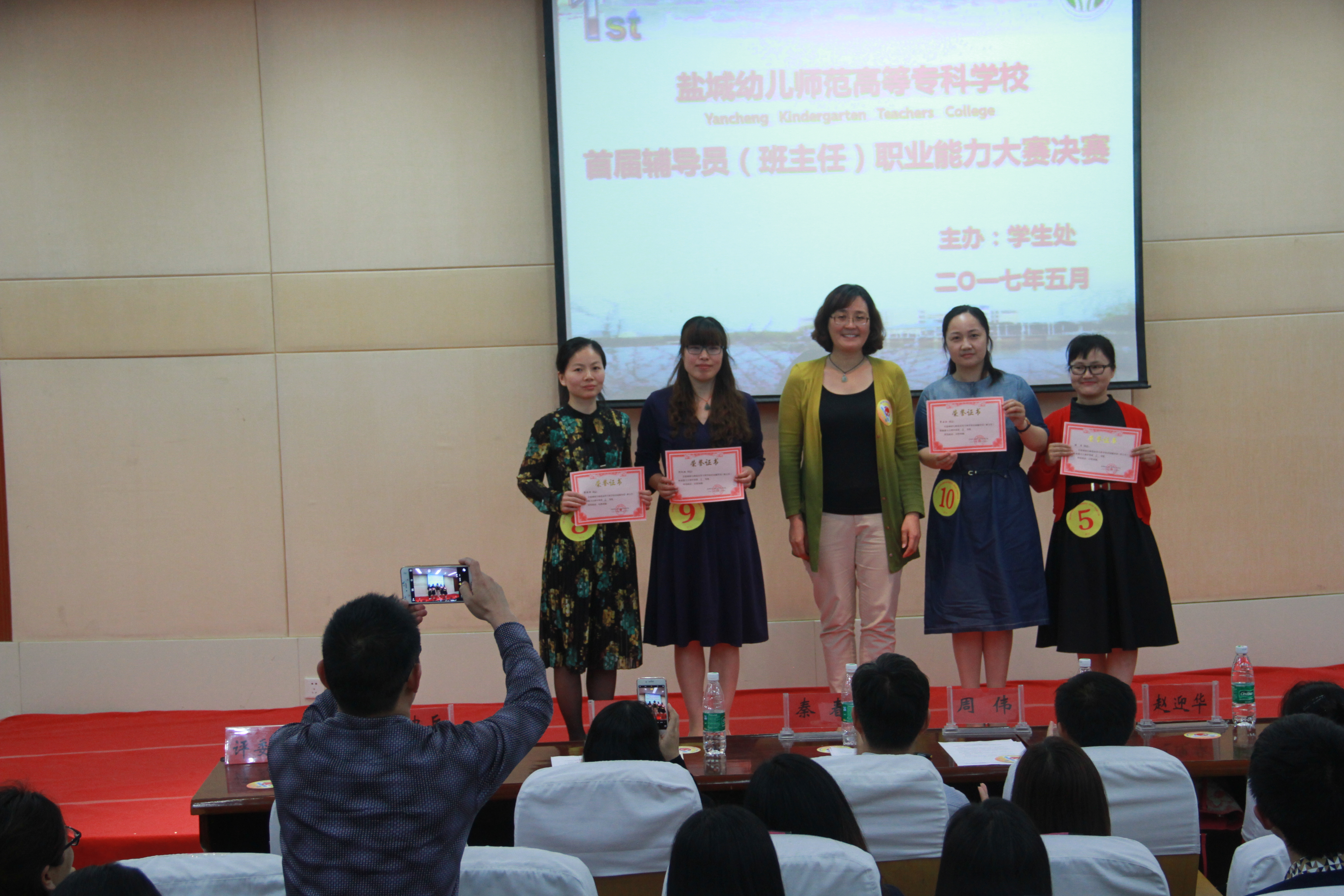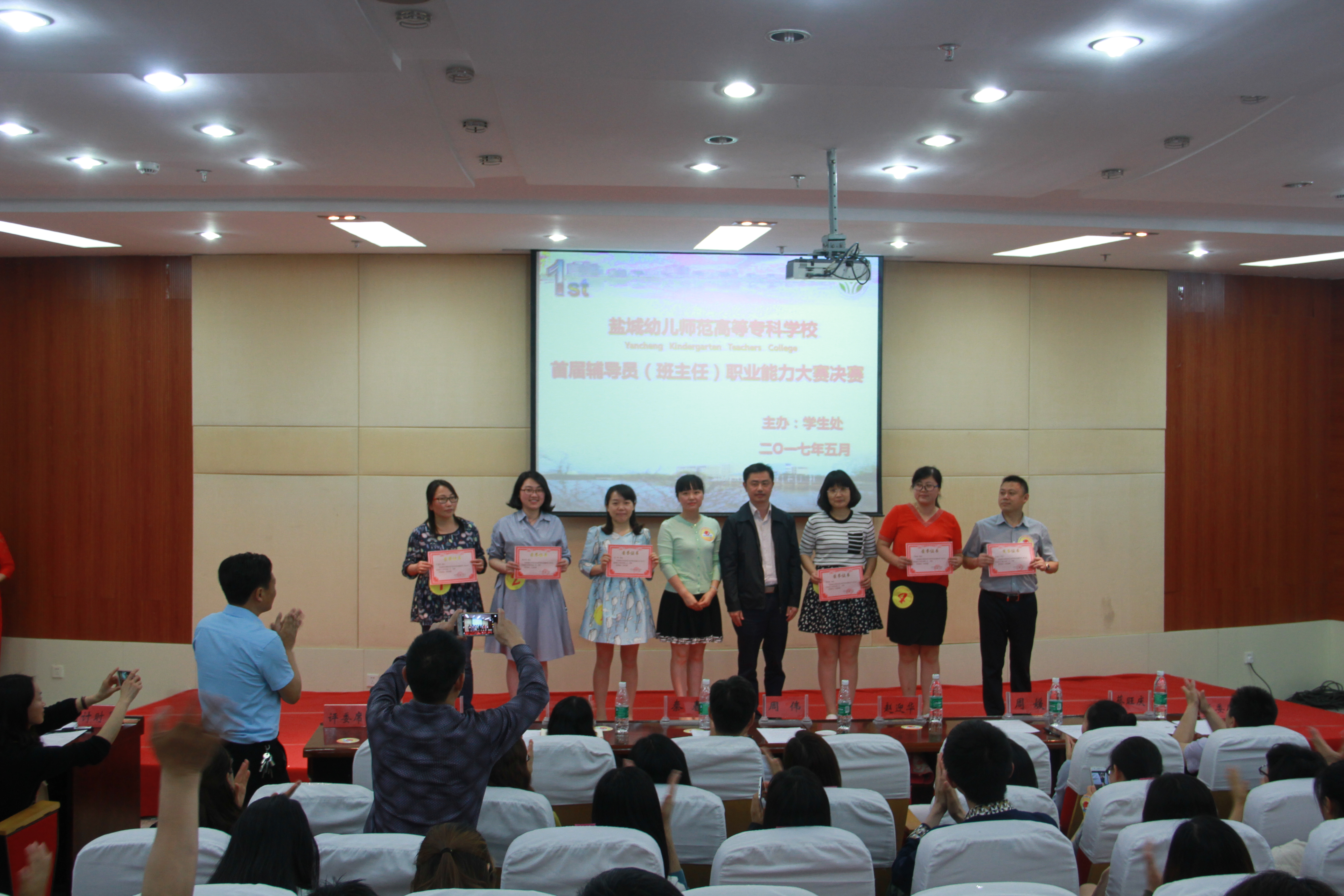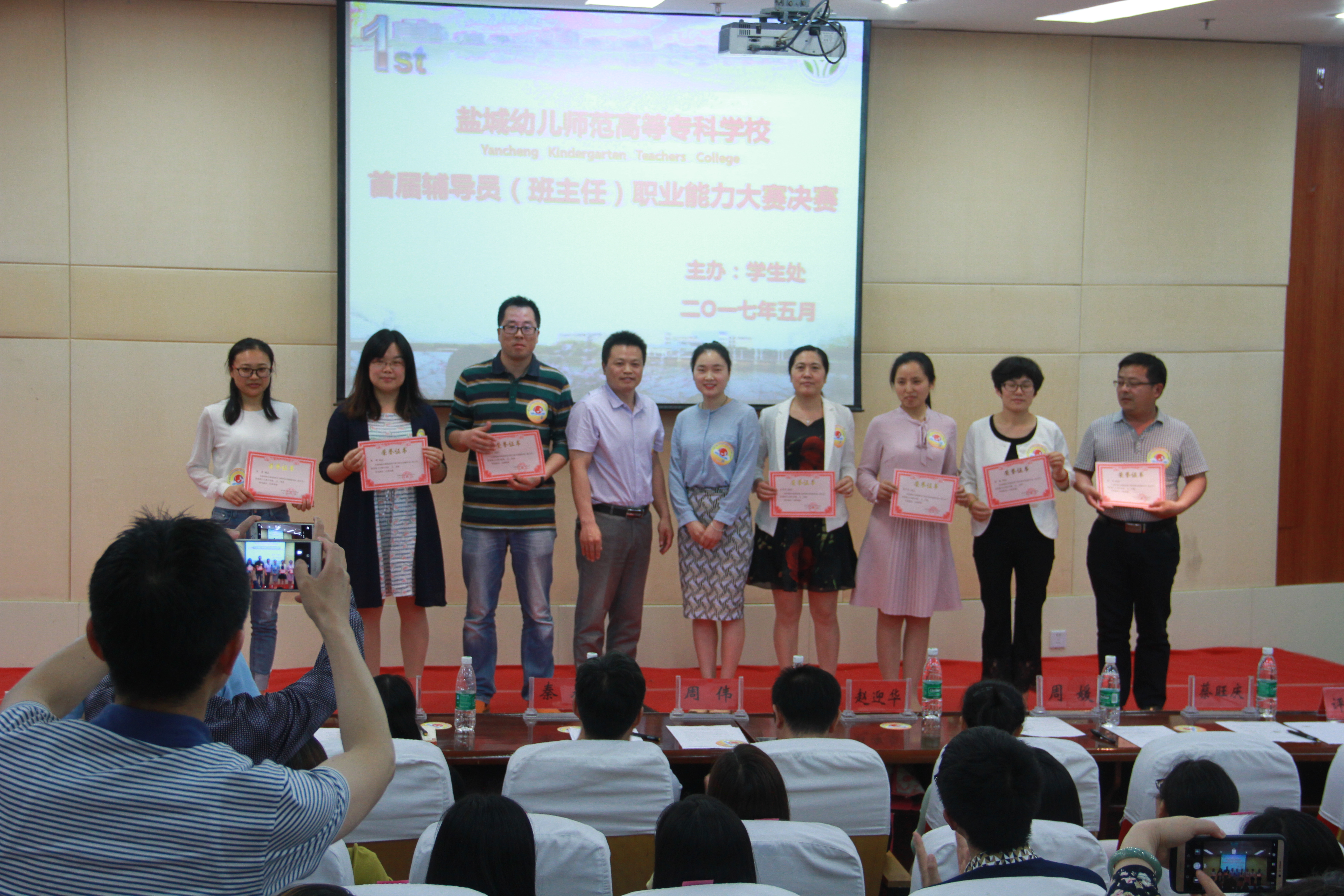 5月24日下午,盐城幼儿师范高等专科学校首届辅导员(班主任)职业能力大赛总决赛在北校区图文信息中心举行。省辅导员职业能力大赛苏北片区一等奖获得者、江苏医药职业学院周媛老师,省高校辅导员年度人物提名奖获得者、盐城师范学院李霞老师,盐城工业职业技术学院经贸学院周伟书记,盐城工学院学生科赵迎华科长,以及我校纪检监察室秦春主任、教务处蔡旺庆处长、学生处易忠兵处长等7位嘉宾受邀担任本次比赛评委。校党委书记刘毓航、校领导崔霞、各学院相关负责人、师生代表等300余人观摩了决赛。本次比赛由陆艳艳老师主持。