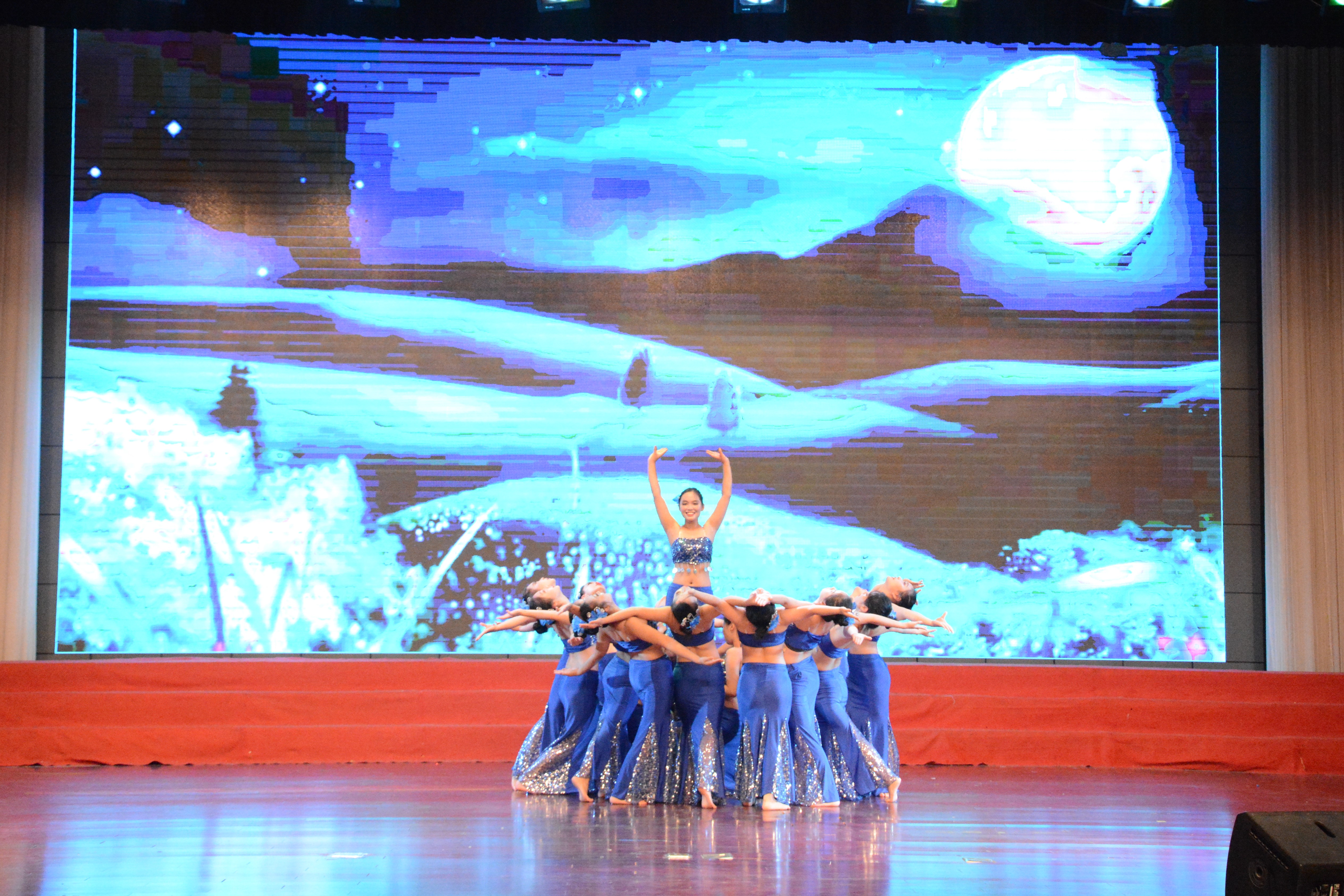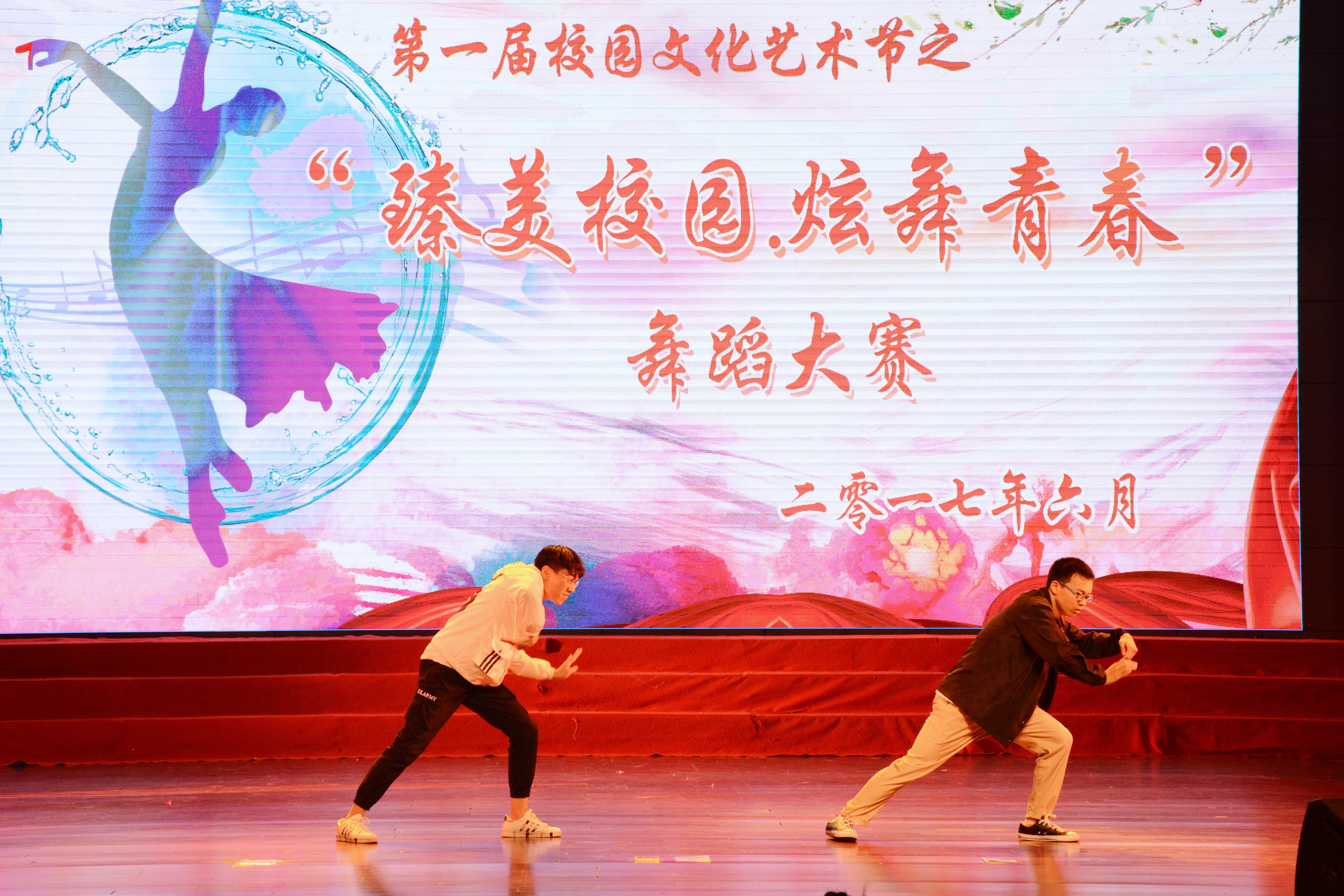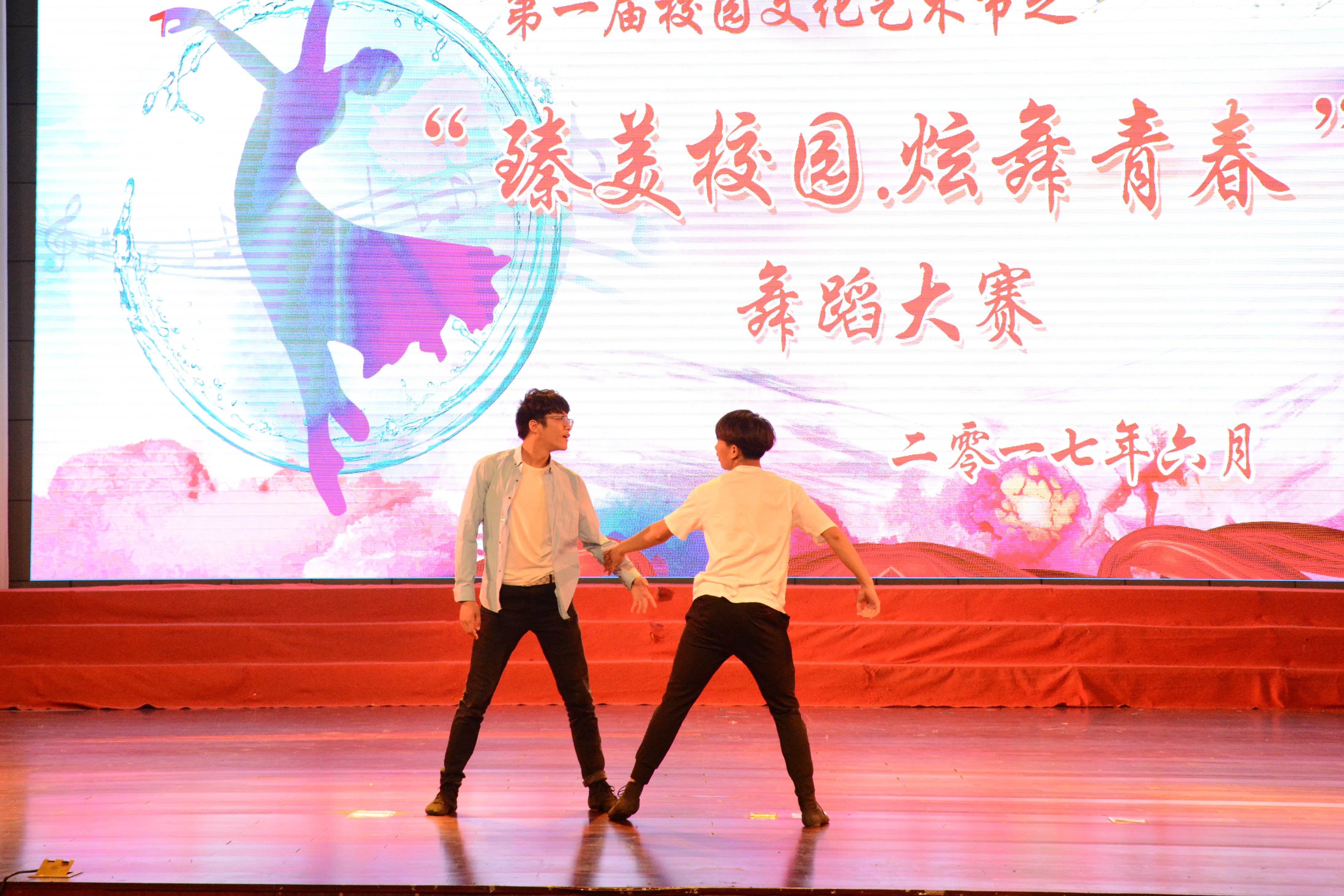 本次比赛在许奕迪、夏凡越两人的女子双人舞《同行》中拉开帷幕。“西部开发春风劲,边疆处处风光美。”一群热情奔放的外语系姑娘们带来的新疆舞《花儿为什么这样红》,洋溢出火红的青春激情;郭天祥、侍彦两位大男孩带来的双人舞《追梦》则别出心裁、让人眼前一亮;幽静的竹楼,欢乐的泼水,一群身着民族服饰的少女款款起舞,王心静等同学的《版纳印象》给我们带来了圣鸟开屏般动人的韵律;比赛最后在钱宇哲、桑彬彬两位同学带来的机械舞《Popping》中落下帷幕。