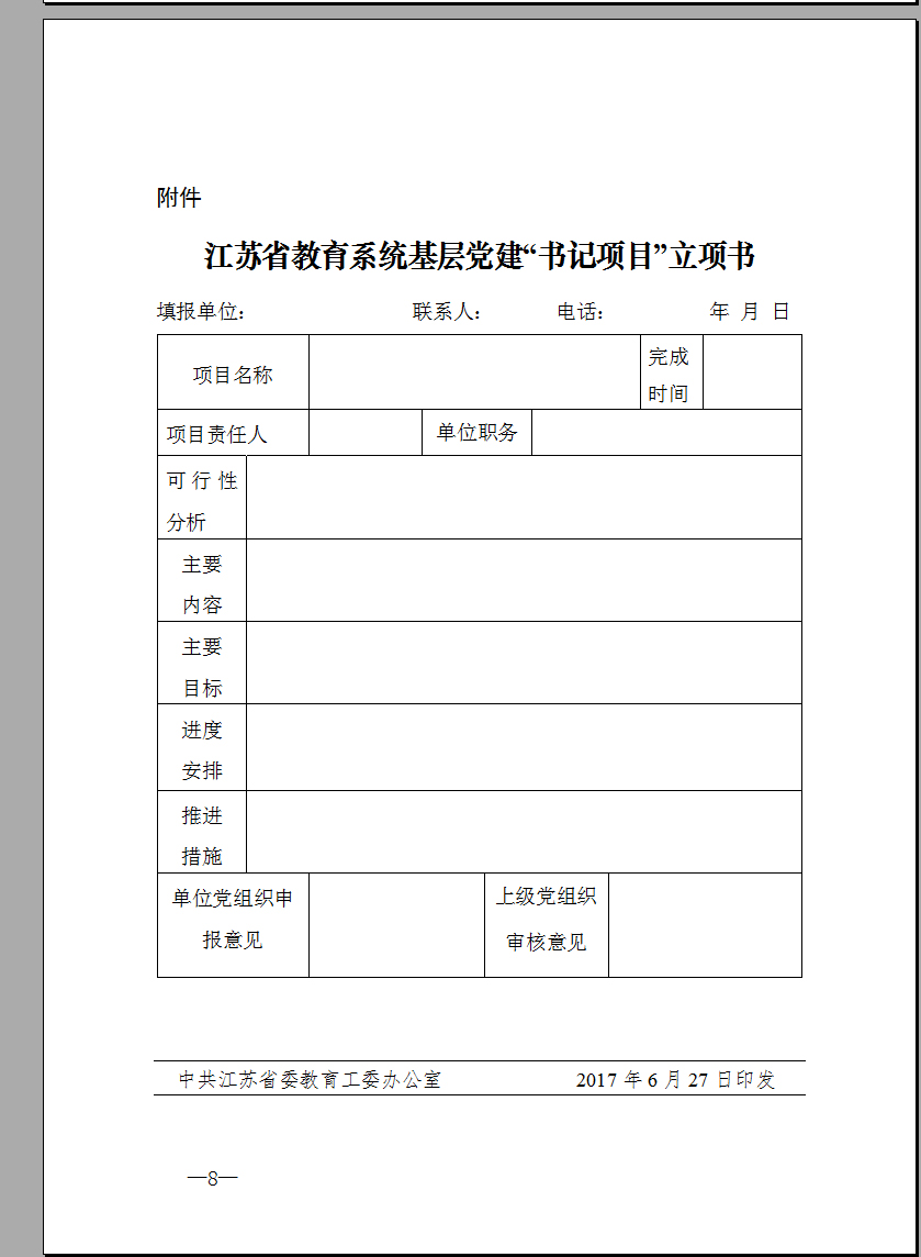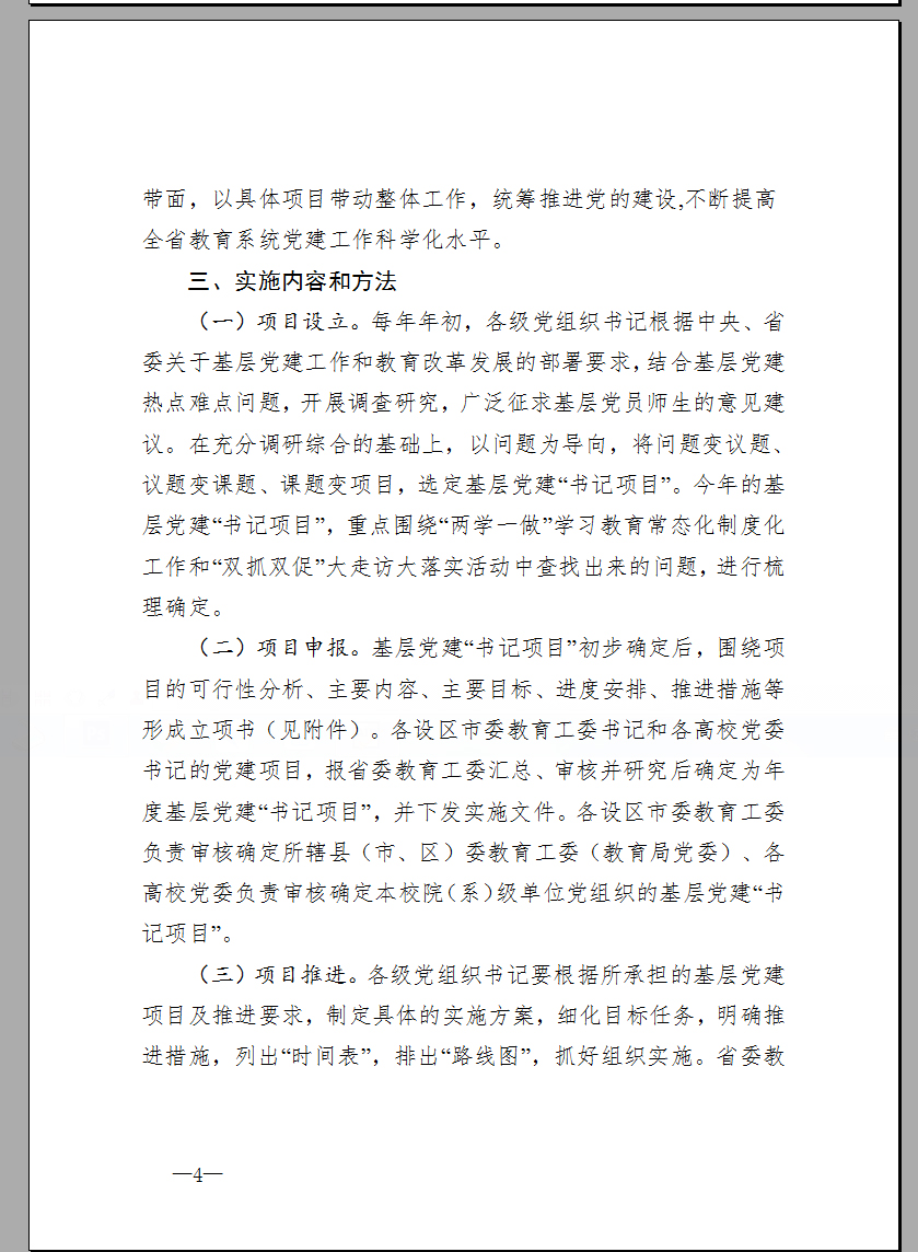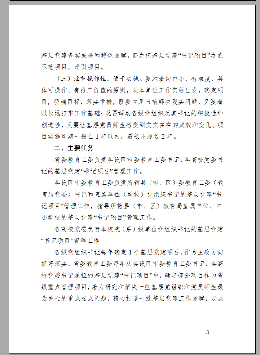 省委教育工委关于在全省教育系统推行基层党建“书记项目”管理工作的通知