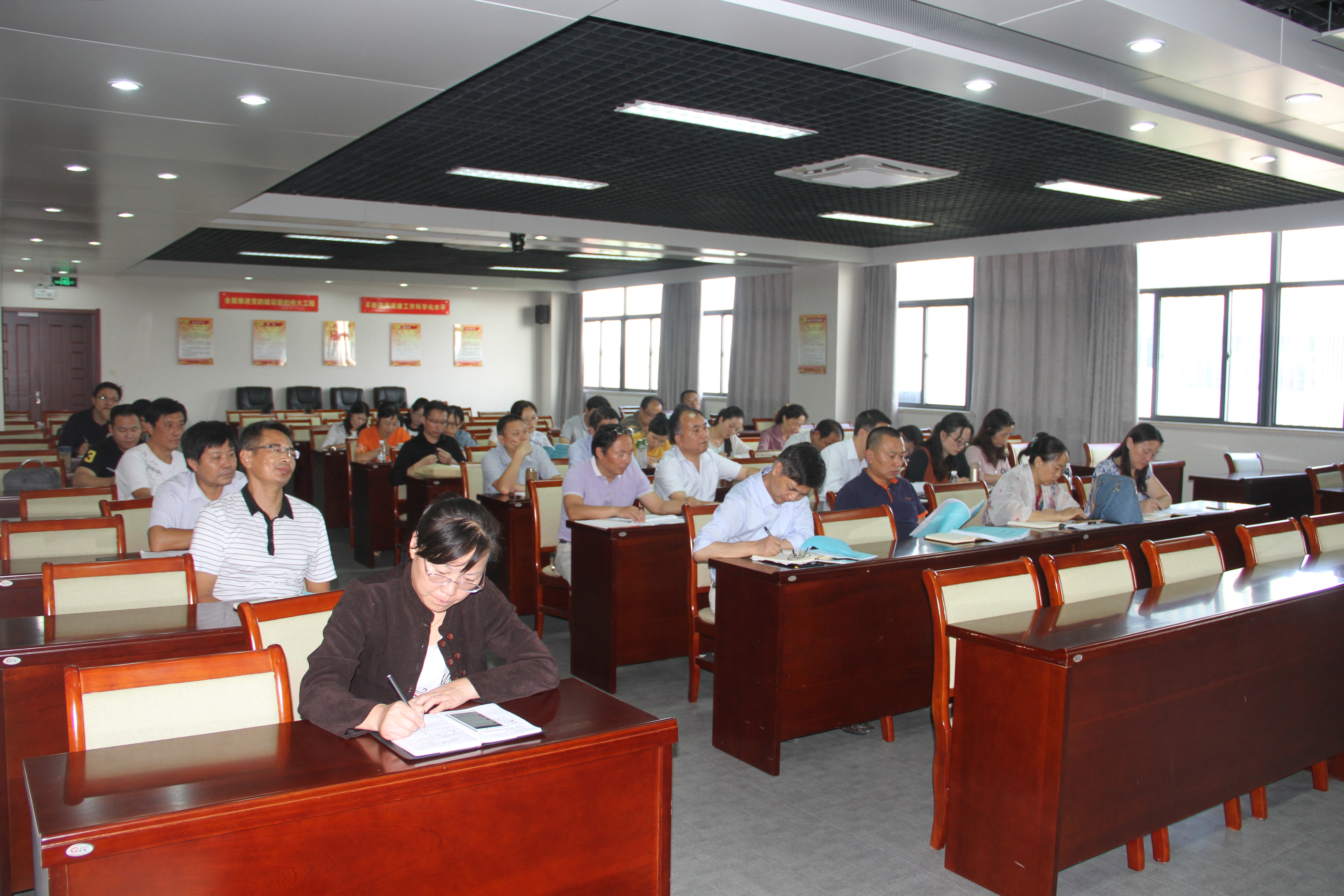 姜统华校长对教研室的性质定位作了深刻分析,同时从专业背景、研究能力、工作责任心三个维度对教研室主任的任职条件做了阐述,并对做好教研室工作提出三点要求:一是要强化学习,提高工作本领。要不断学习全国、省、市教育教学改革文件精神,熟悉人才培养方案,研读各课程教学大纲,提高教研室成员的研教能力。二是要悉心研究,找准工作靶心。要把准我校教育教学改革方向,面对教学中存在的各种问题、短板与瓶颈,研制出切实可行措施,不断解决工作中的难题。三是要开拓思路,创新工作方法。教研室主任要利用专业认证、人才培养质量评估等契机,大力倡导听课、评课与赛课,推广混合式教学,形成互动式、探究式、开放式课堂,使课堂教学水平与质量的提高真正落到实处。