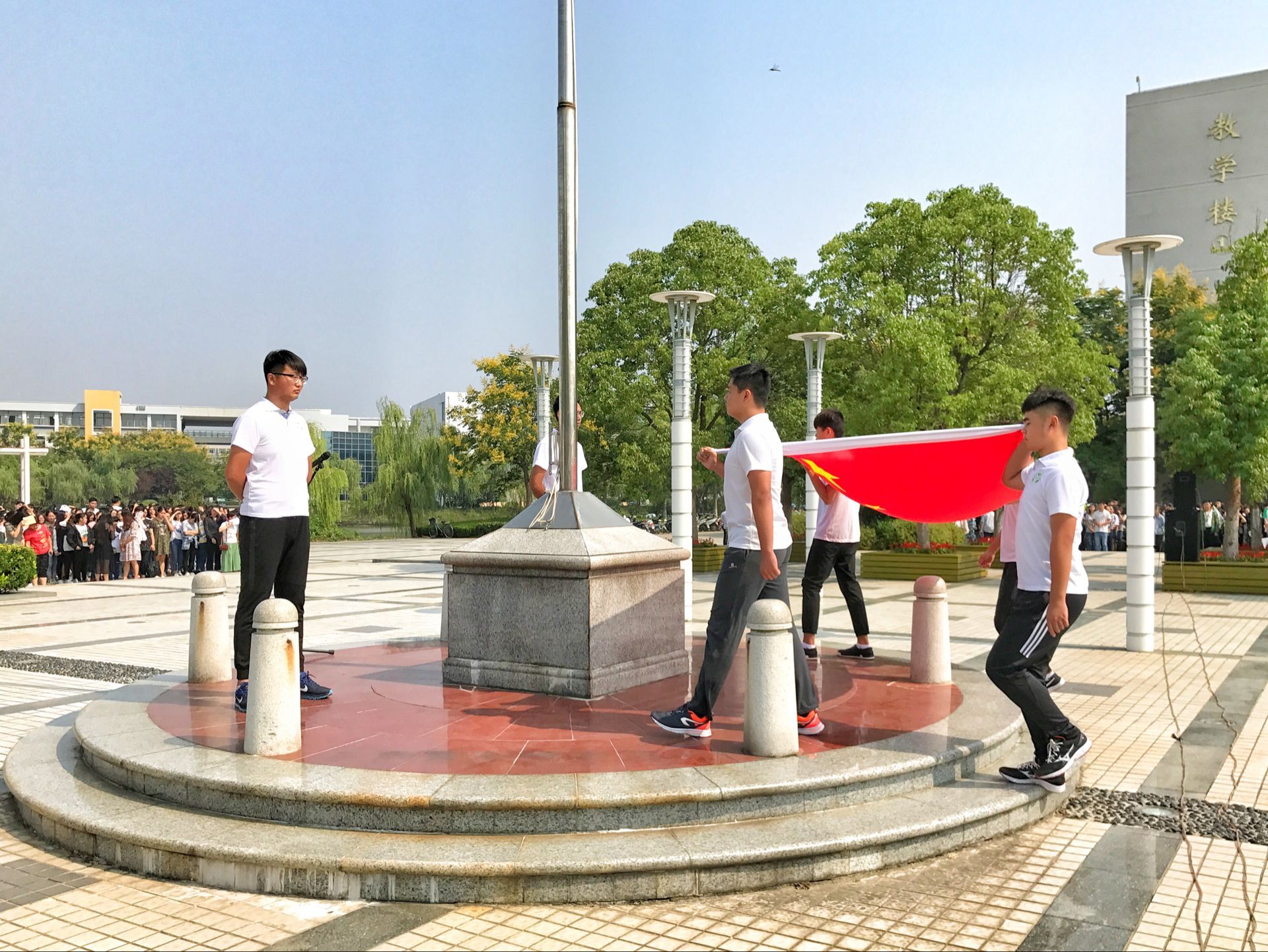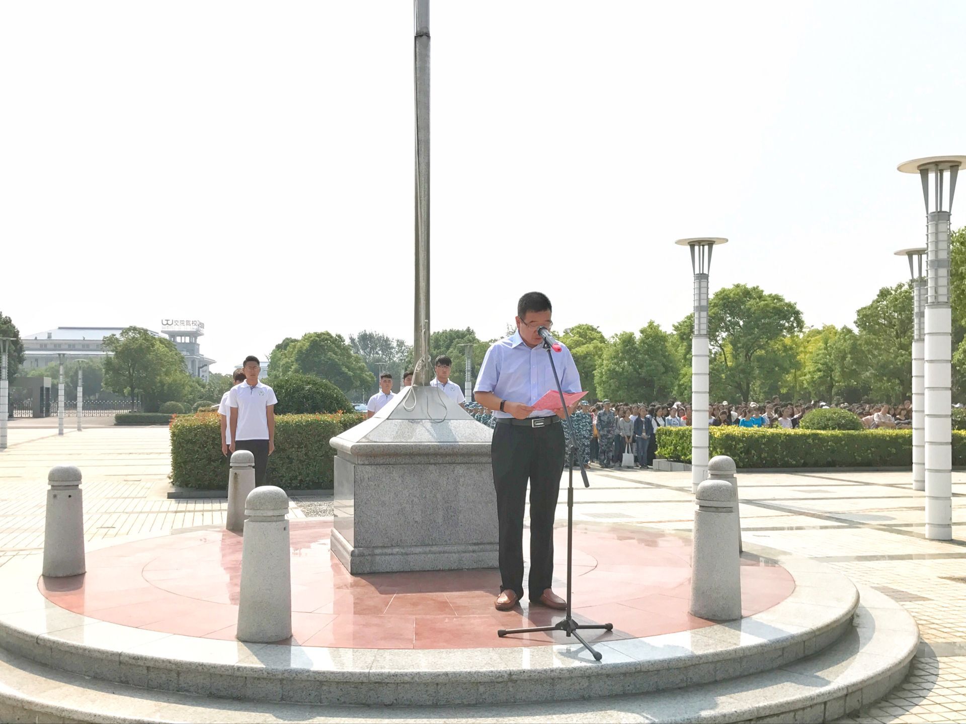9月18日上午10:00,在我校南北两校区同时举行了本学期的第一次升国旗仪式。校领导张体松、戴永湖分别作国旗下讲话。