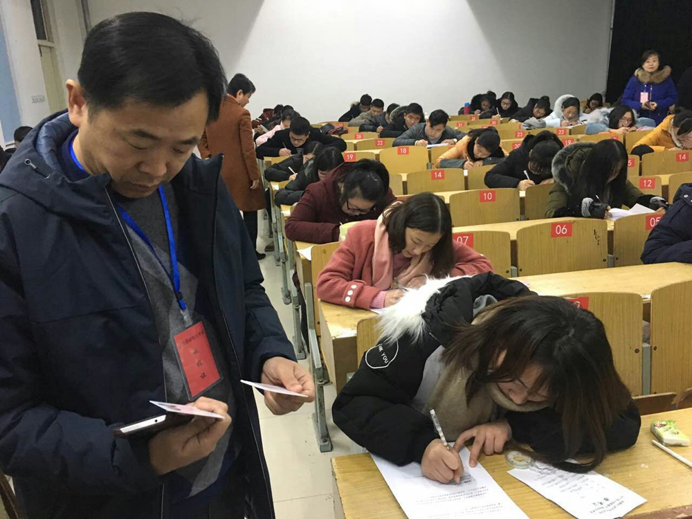 12月25日晚,我校2017年秋学期入党积极分子培训班结业考试在北校区2号楼阶梯教室举行,来自全校101名学员参加了结业考试。本次考试集中安排考场,整个考试组织有序,考场纪律良好。校党委班子成员以及市委组织部负责同志进行了巡考。