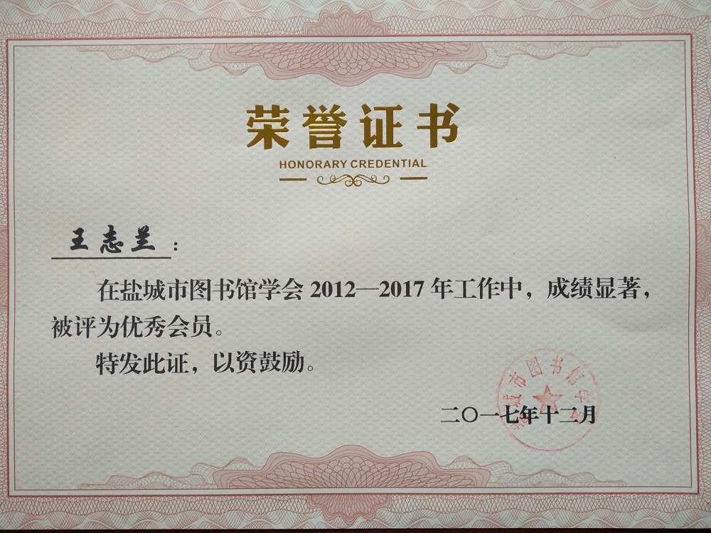 大会对2012年12月至2017年12月期间在图书馆工作和学会工作中做出突出成绩的10家会员单位和26位学会会员进行了表彰奖励,我校图书馆被评为先进集体,王志兰老师被评为优秀会员。