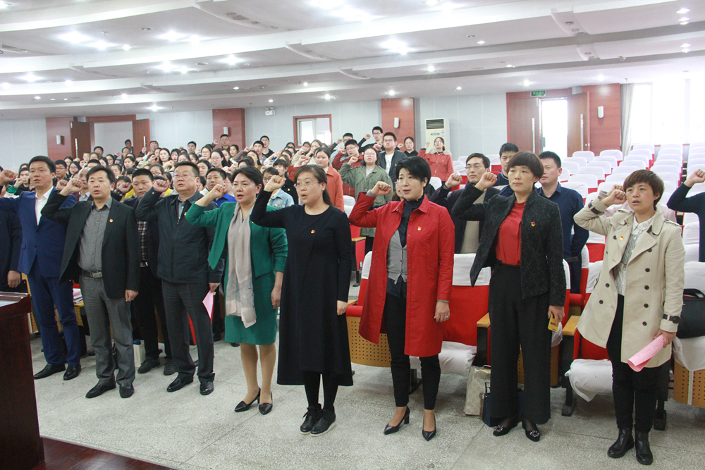 全体参会人员在组织人事处唐晓红同志的领誓下,面向党旗庄严宣誓,铮铮誓言体现了党员们对党的忠诚与热爱。