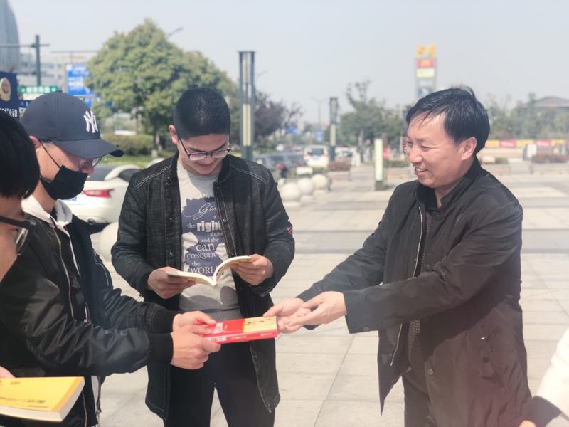阅读是人类获取知识、增长智慧、传承文化的重要方式,读书可以让人保持思想活力,让人得到智慧启发,让人滋养浩然之气。在第23个4·23 “世界读书日”来临之际,农工党盐城幼专支部(南)在解放南路南金鹰广场举行了“人生因读书而精彩”的阅读推广活动。4月18日中午,农工党盐城幼专支部(南)在南金鹰广场悬挂宣传横幅,张贴活动海报,摆好桌椅图书,市民纷纷驻足观看。农工党盐城幼专支部(南)全体党员向市民发放4.23读书节倡议书,赠送社科、文学、艺术等图书,推荐优秀书目、读书网站、读书微信公众号,介绍世界读书日的由来,讲解读书方法及意义。