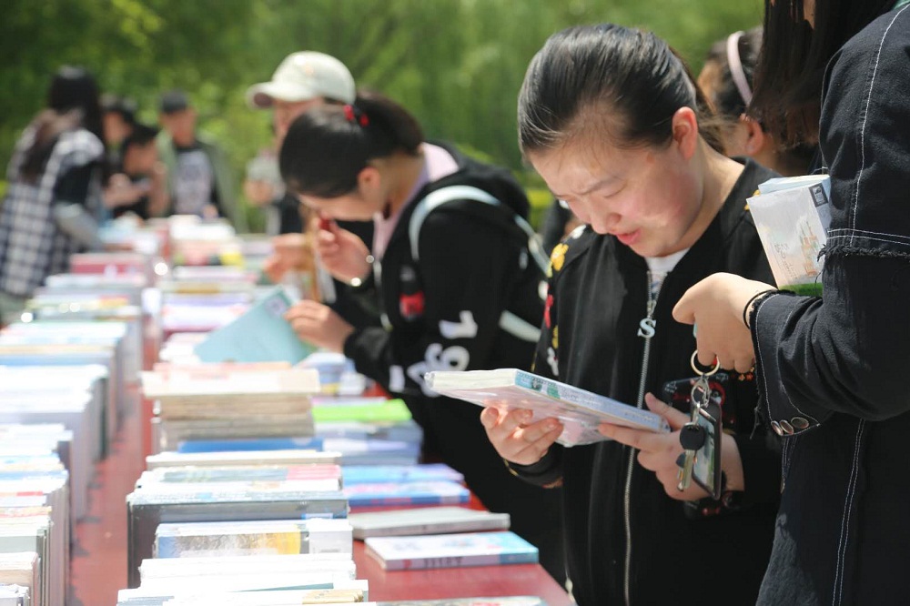 习近平总书记指出,读书可以让人保持思想活力,让人得到智慧启发,让人滋养浩然之气。读书,对于新时代大学生而言,既是精神成长与发育,更是崇高使命与责任。为引领我校学子养成爱读书、多读书、读好书的良好习惯与生活方式,图书馆于5月9日、10日分别在南北校区举办我校第二届“学海书香”读书节系列活动——“学海书市”。书市主题为学海扬帆 ,书香致远。书市主要形式为悦读——你看书,我奖励;惠购——你买书,我优惠;荐书——你选书,我买单;分享——你展示,我宣传。“学海书市”共展出图书5000册左右,读者可现场阅读,可择优购买,可推荐馆藏,可交流分享。