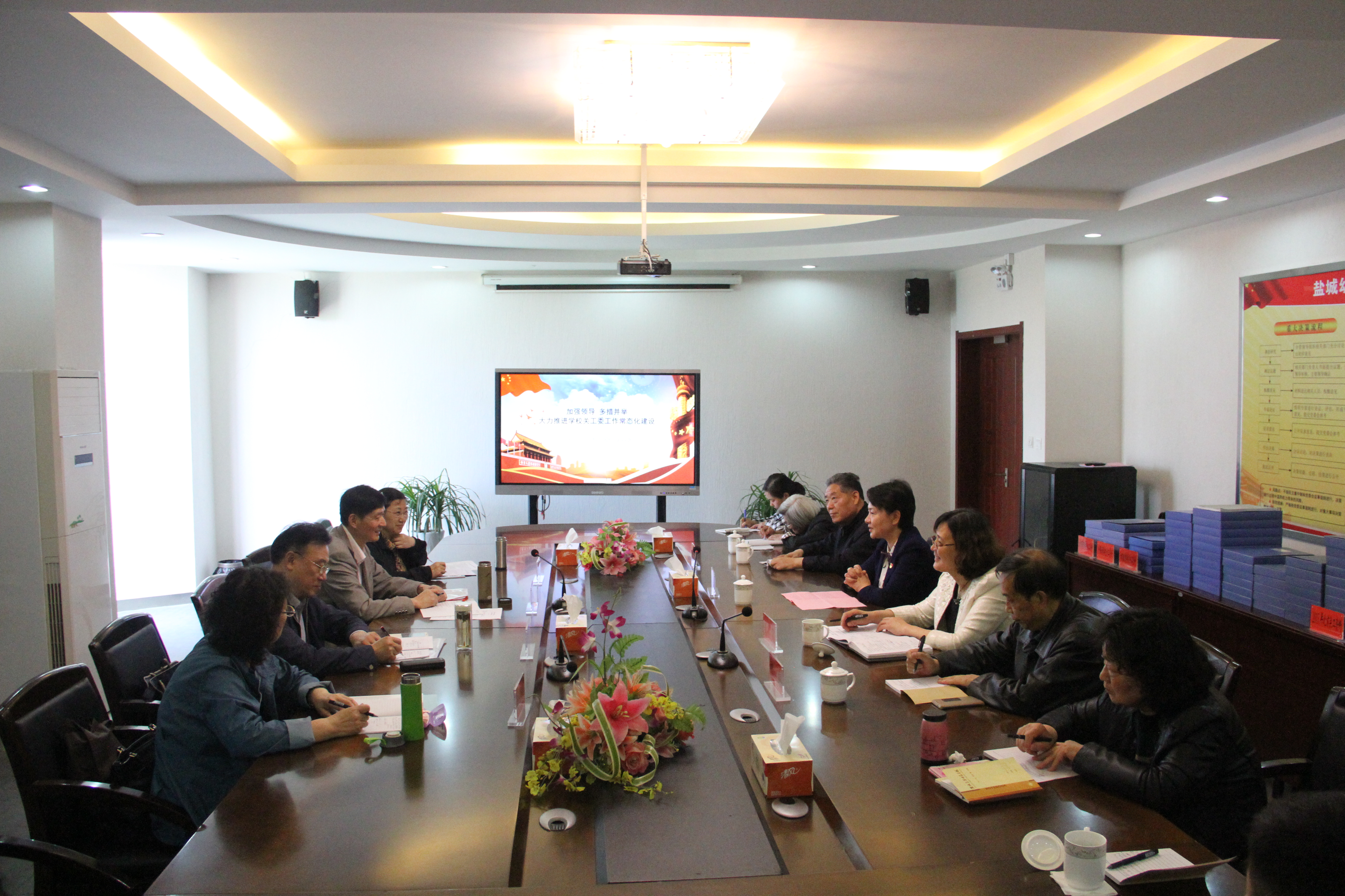 学校党委书记、关工委主任刘毓航介绍了我校关工委工作常态化建设情况,她指出,重视和支持关工委工作是校党委应尽的职责。近年来,我校在各个方面为关心下一代工作提供了必要的条件,做到了“思想重视、组织关爱、活动支持”,推动了我校关心下一代工作向前发展。老同志们充分发挥政治优势、经验优势和智慧优势,他们退而不休,继续关注学校建设,关心广大青年师生的健康成长,为培育充满活力和创造力的新一代做出了重要贡献。实践证明,关工委是促进学校全面建设的一支不可小觑的力量。