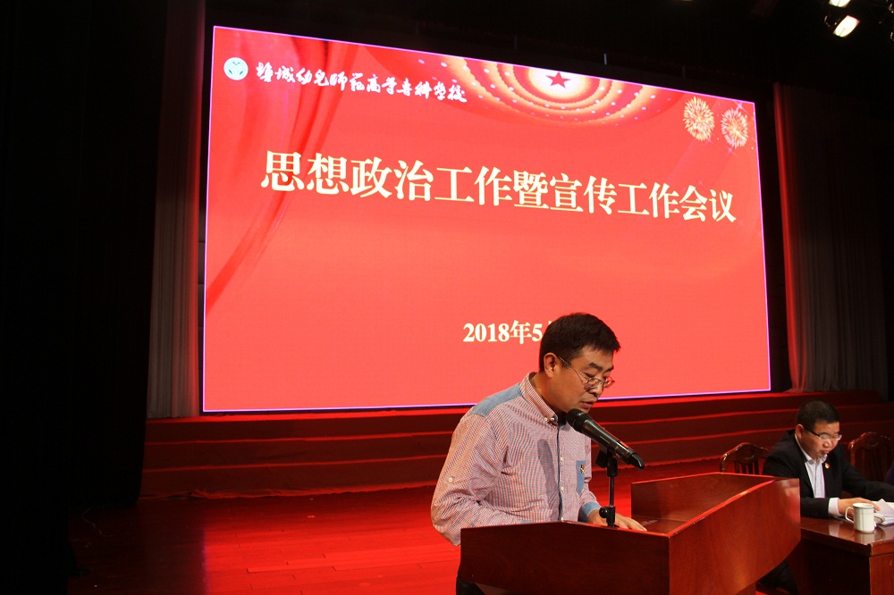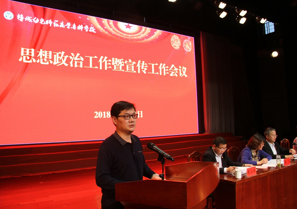 5月23日下午,盐城幼专思想政治工作暨宣传工作会议在北校区鲁艺剧场隆重召开。全体校领导、全体教职工和学生干部代表参加会议。会议由校长姜统华主持。本次会议旨在深入学习贯彻党的十九大和全国全省高校思想政治工作会议精神,表彰学校校新闻宣传报道工作中涌现出的先进集体和个人,认真总结学校思想政治工作的经验做法,安排部署今后一个时期思想政治工作,为建设全国一流水平特色幼专提供强大精神动力和坚强政治保证。