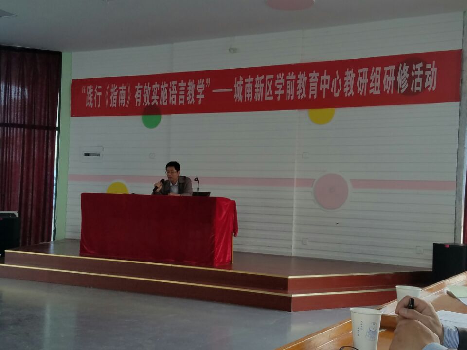 两节观摩课后,戴兢兢处长对中班语言活动课《谁和谁好》进行了精彩的点评。她首先肯定了执教老师对各环节的设计比较合理,较好的在游戏中发展了幼儿的各种能力;同时建议执教老师可以在教学目标设定时,加强语言能力训练,注意儿歌的体裁特点,适当加入肢体动作表演,以便更有效培养幼儿的语言能力素养培养。紧接着,张和新主任又从“课程建设和开发”的高度,对第二节绘本阅读课《永别了,袜子》做了有效点评。他提出,我们要充分重视幼小衔接问题,在大班可以有意识的培养幼儿的文字意识;在选择绘本的时候,要注意其是否能有效促进幼儿各项能力的发展;最重要的是一定要培养幼儿阅读的兴趣,因为兴趣是幼儿最好的老师。