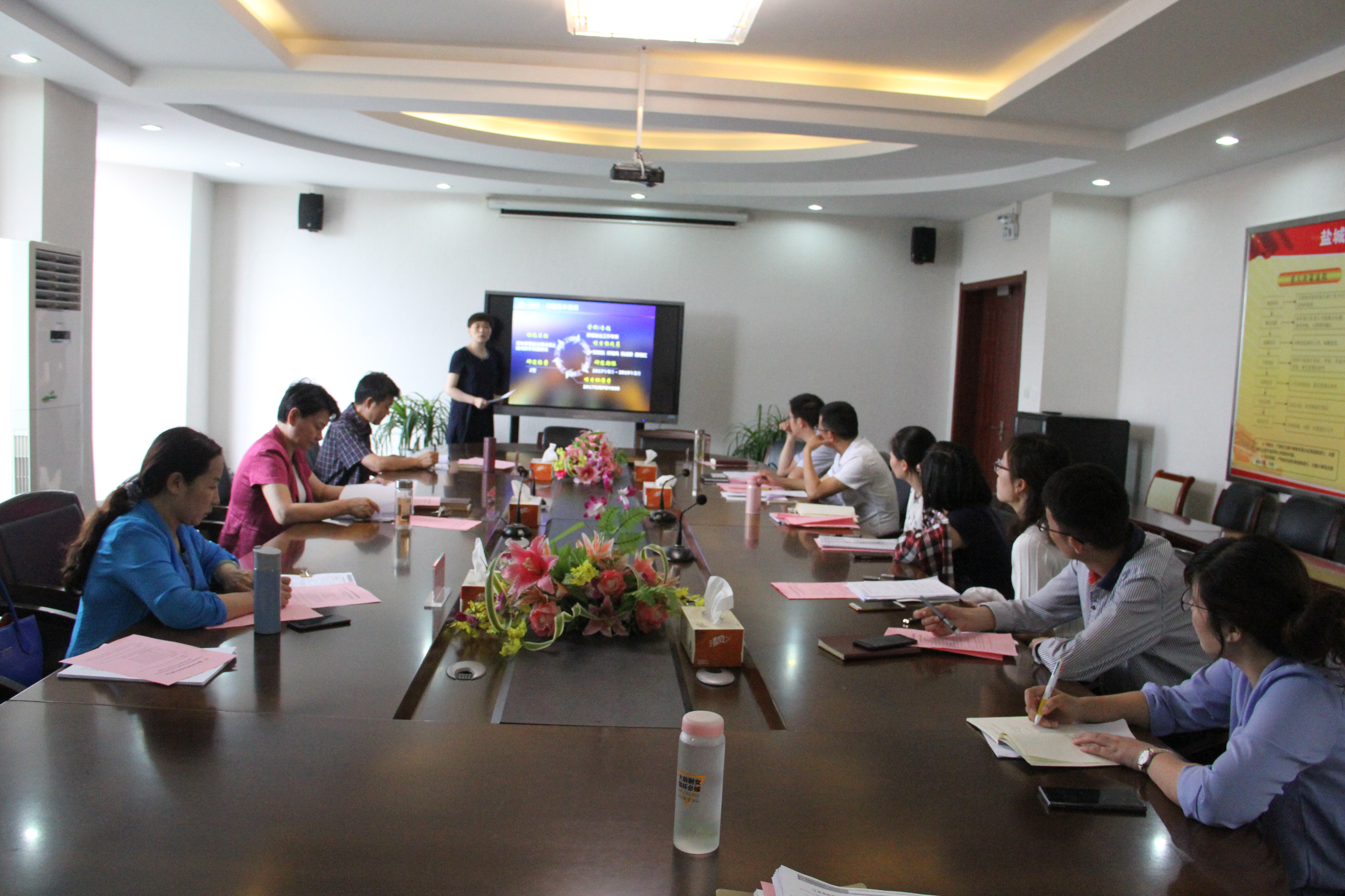6月22日下午,我校组织的江苏省高校哲社研究基金项目2018年申报专家评审会暨江苏省高校哲社研究项目年度检查在南校区图文信息楼五楼会议室进行。会议邀请了我校党委书记刘毓航、校长姜统华、校领导孙永龙、秦春教授、白金香教授、管建祥教授、孙曙教授七位专家。校领导孙永龙主持本次活动。接受年度检查的省高校哲社研究项目主持人及核心成员近三十位教师参会。