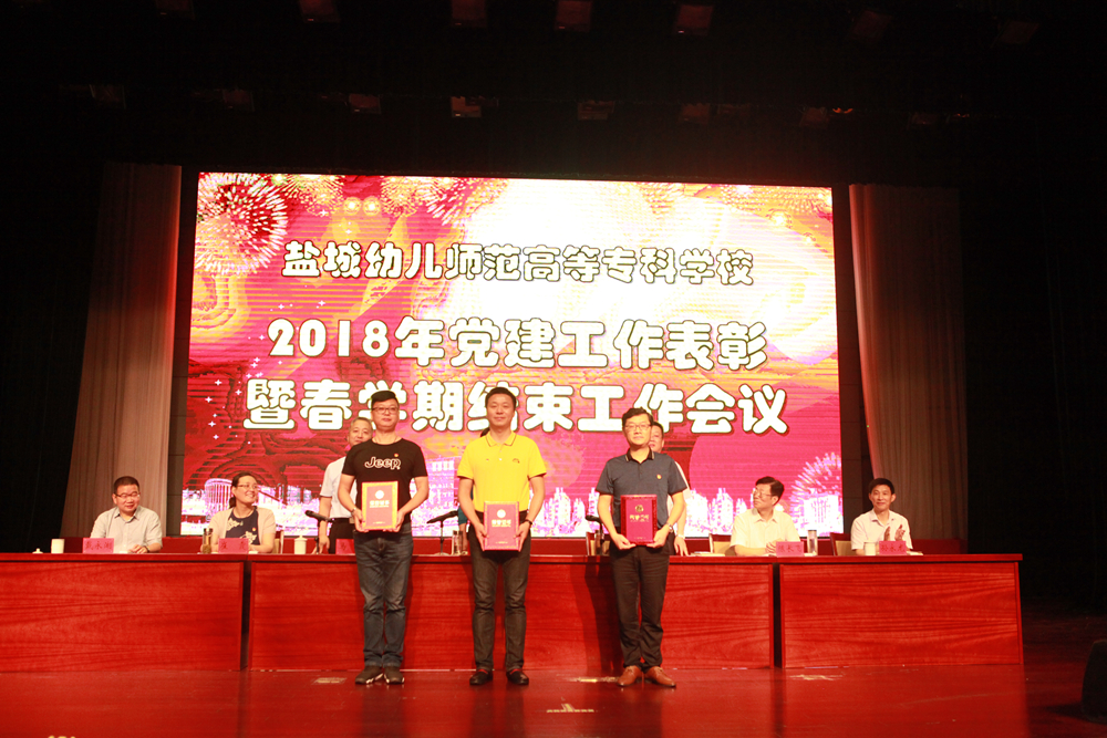 会上对2018年党建工作进行表彰,学校纪委书记马力代表学校党委宣读了表彰决定,对许艳、 夏智、朱纯洁 、邵小明等20名优秀党员;李鹏、周德秀、陈庚远等 10名优秀党务工作者进行表彰。外语系党支部、初等教育系等3个 院(系)被评为“先进党支部”;教管党支部、鲁迅艺术学院等3个党日活动被评为“最佳党日活动”。