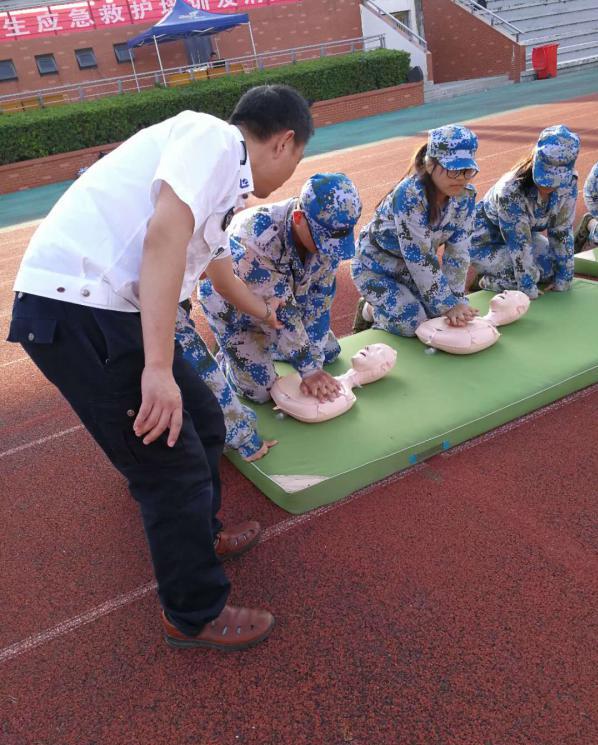按照演练预案,全体新生在寝室等待疏散号令。疏散号令响起、烟雾弹打开后,学生在工作人员的指挥下快速而有序下楼、按预定线路疏散到操场。在操场集中清点人数后,由城南消防大队朱前旭指导员和盐城市救护中心胥伟华主任分别为同学们作了消防知识讲座和应急救护培训,并指导师生进行了现场演练。