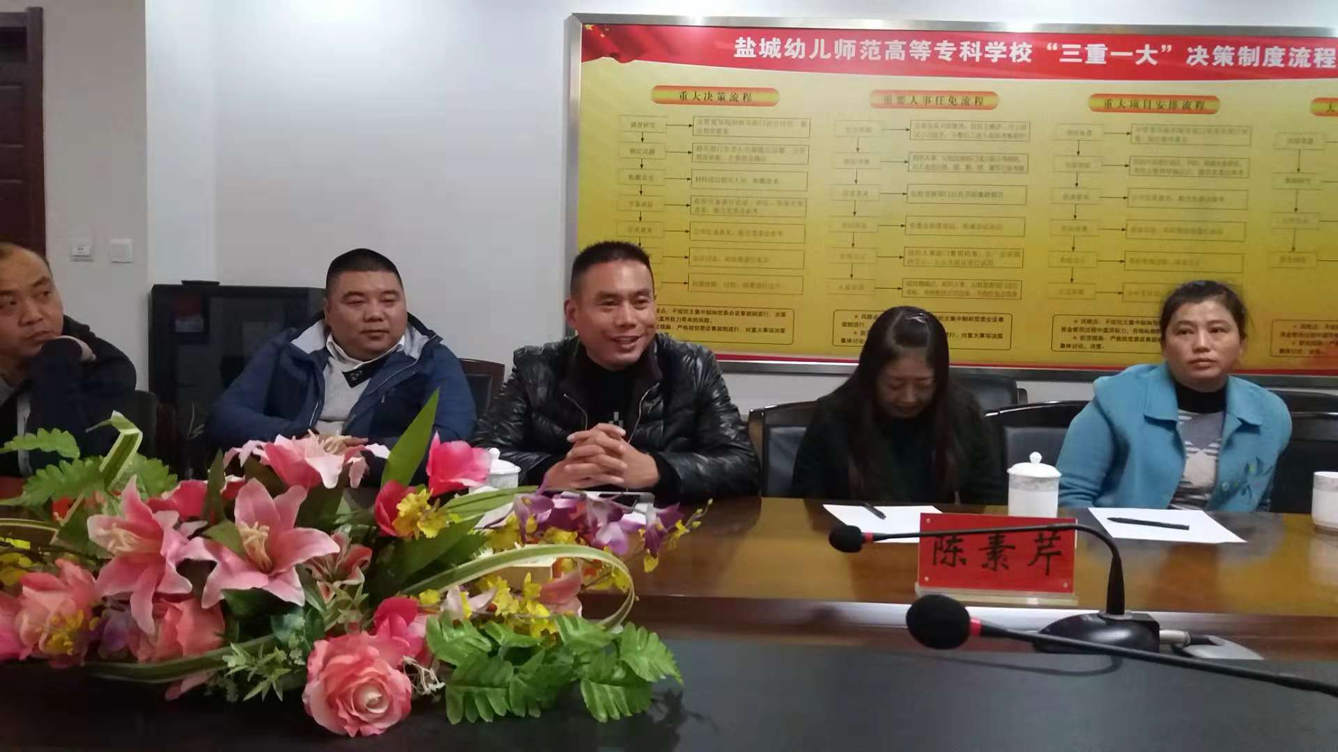 2018年11月21日下午2:30,天空飘着绵绵细雨,南校区行政楼五楼中会议室却暖意融融,盐幼专第一次党代会筹备工作学生家长座谈会正在举行。共有来自全校六个院系共21名家长代表参加会议,我校崔霞副校长、学生处易忠兵处长、教管支部李开岭书记出席本次会议,会议由易忠兵处长主持。