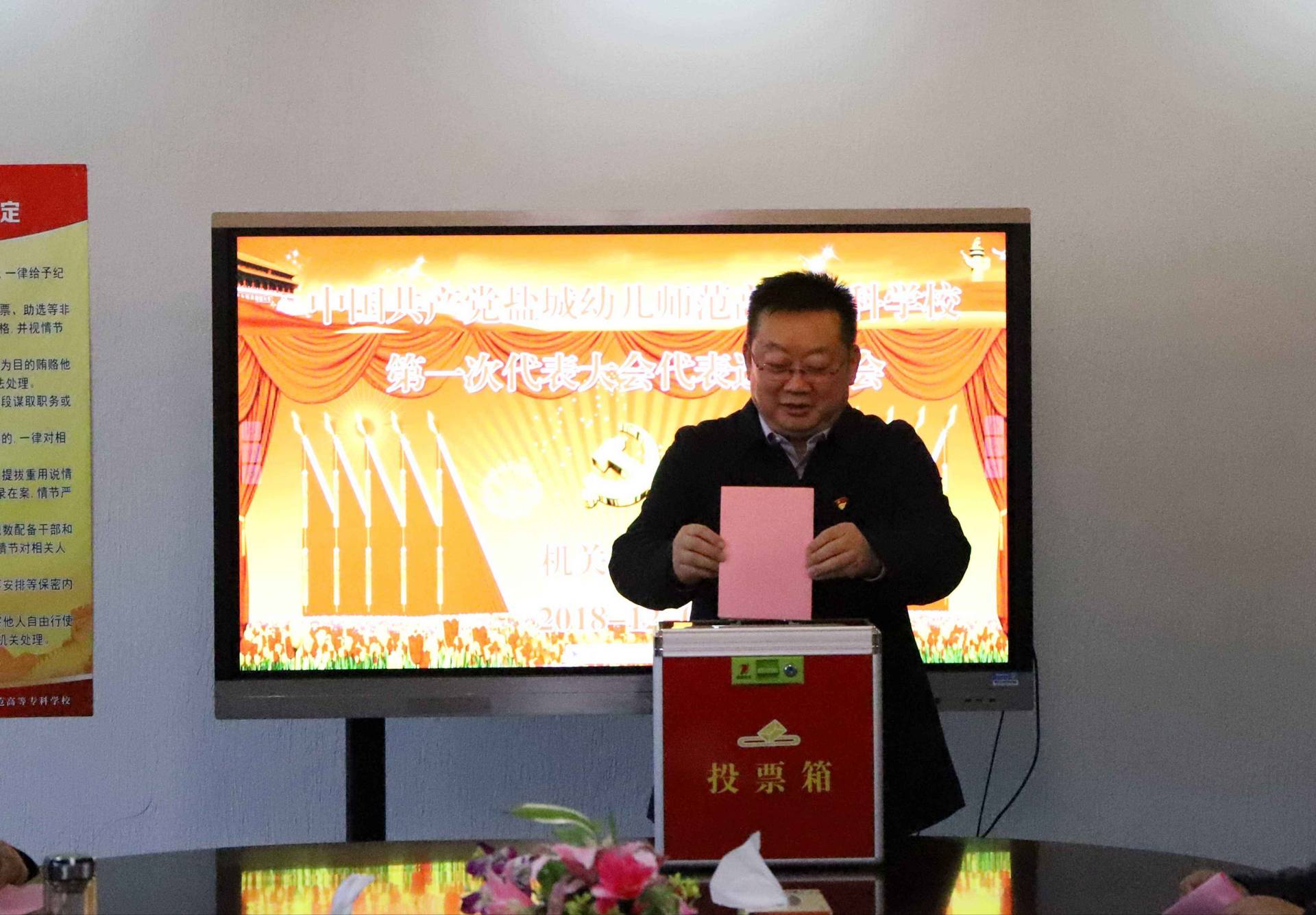 12月4日下午,机关第二党支部在图文信息楼五楼中会议室召开党员大会,进行学校首届党代会代表选举工作,通过无记名投票方式实行差额选举,顺利产生10名党员代表。