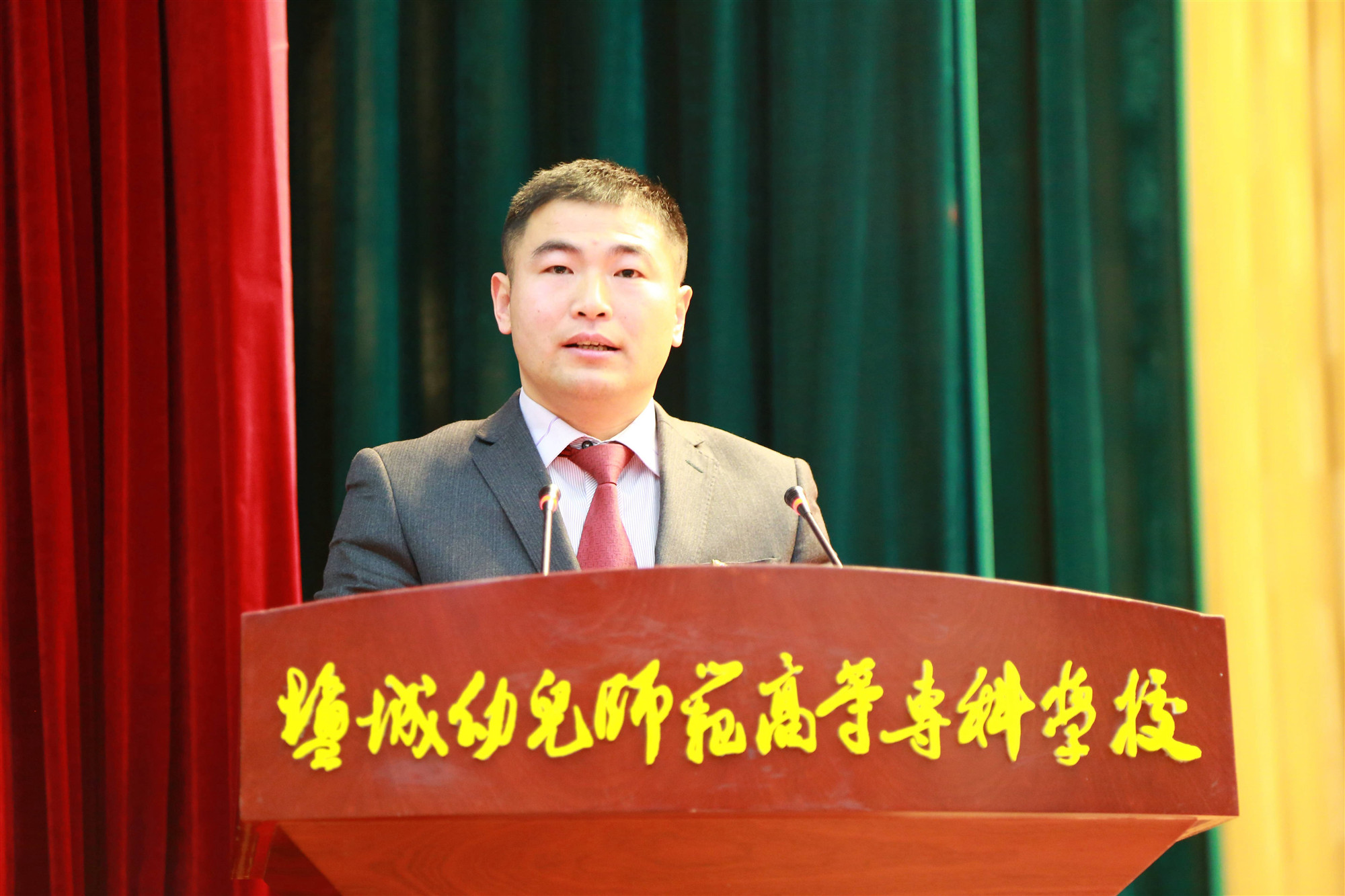 戴红光代表中共盐城市委教育工委、市教育局向会议的召开表示热烈的祝贺!他指出,盐城幼专自2016年升格办学以来,学校党委全面贯彻党的教育方针,牢牢把握社会主义办学方向,瞄准建设全国一流的特色幼专目标,坚持开拓创新,取得丰硕办学成果,学校品质内涵不断丰富,专业结构不断优化,人才质量不断提升,师资力量不断增强,为全市经济社会特别是教育事业改革发展作出了积极贡献。他强调,盐城幼专要积极发挥办学优势,围绕全市基础教育特别是学前教育师资培养和专业成长需求,培养更多师德高尚、业务精湛的好老师,为盐城学前教育提供有力人才支撑。他希望,盐城幼专紧密依托市教育部门,加强协作、共建共享,开创全市学前教育事业新局面。他表示,市委教育工委、市教育局将一如既往支持盐城幼专建设发展,服务学校办好建强各类专业特别是学前教育专业,努力提升学校办学层次,加快建成全国一流特色鲜明的好学校。谱新篇章!