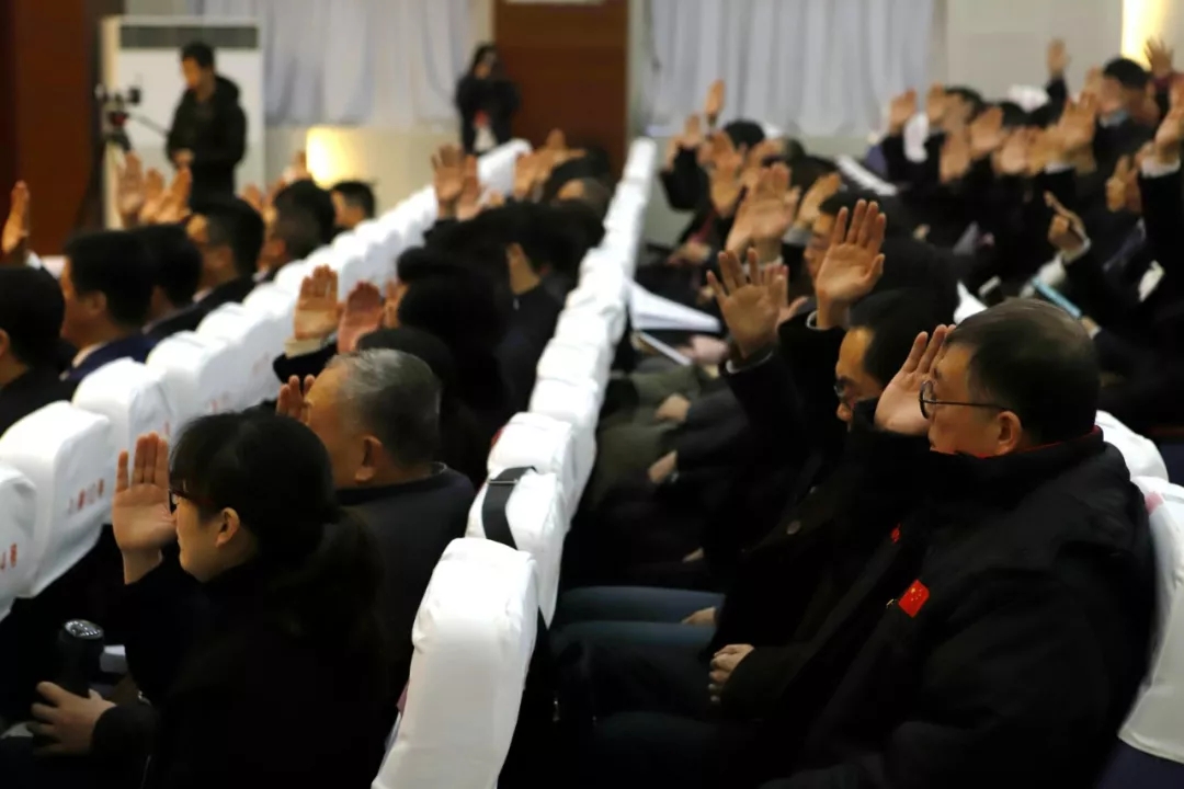 大会选举产生新一届纪委员委员。(从左至右依次为:于卫东、周加林、周梅香、马力、秦春、易忠兵、张彬)