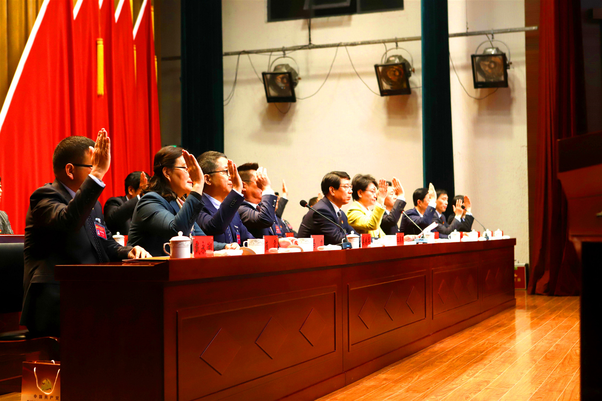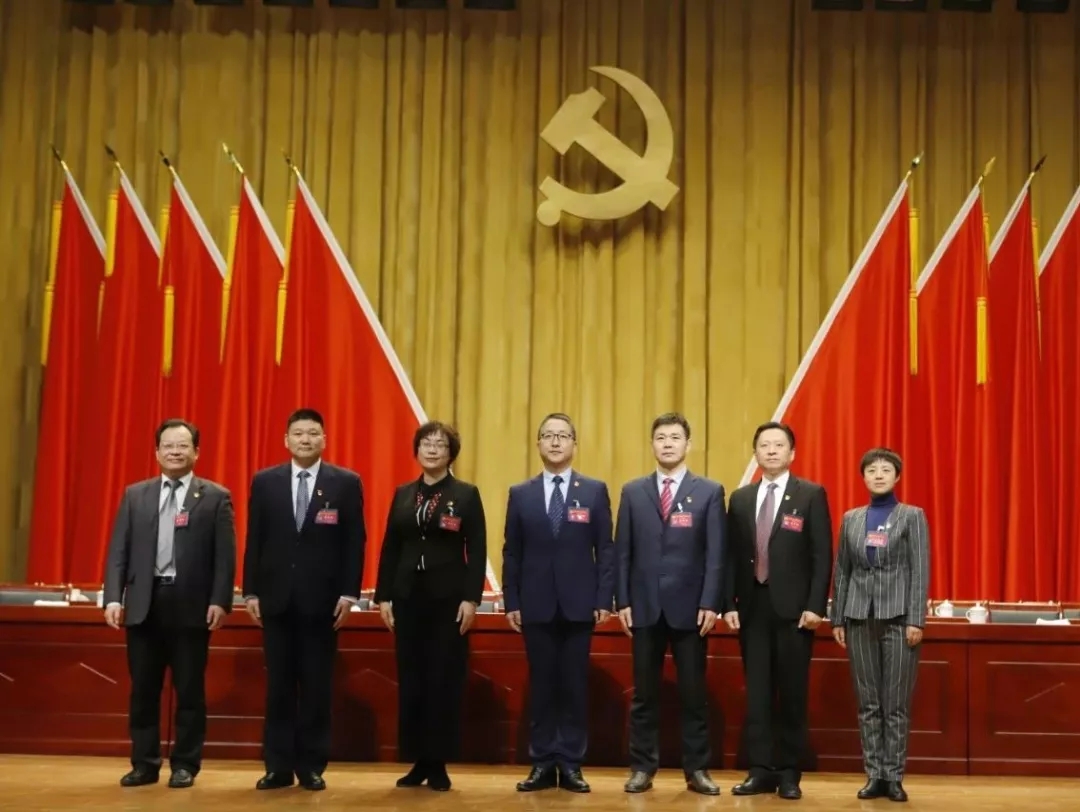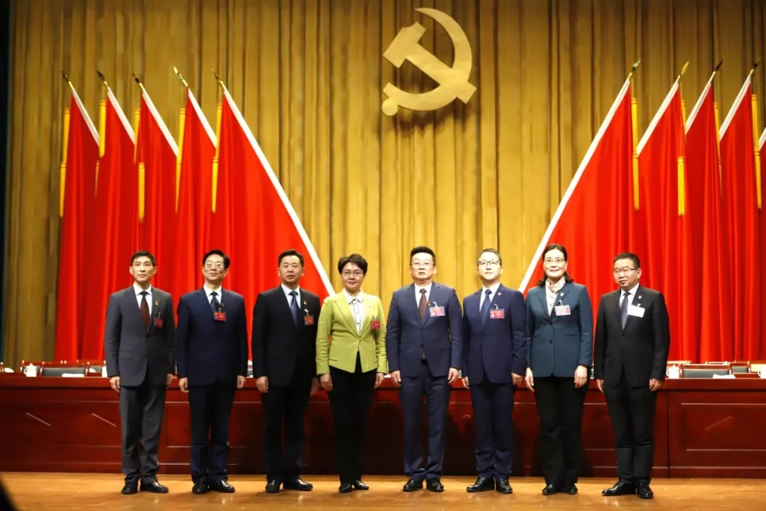 大会选举产生新一届党委委员。(从左至右依次为:孙永龙、陈长飞、张体松、刘毓航、姜统华、马力、崔霞、戴永湖)