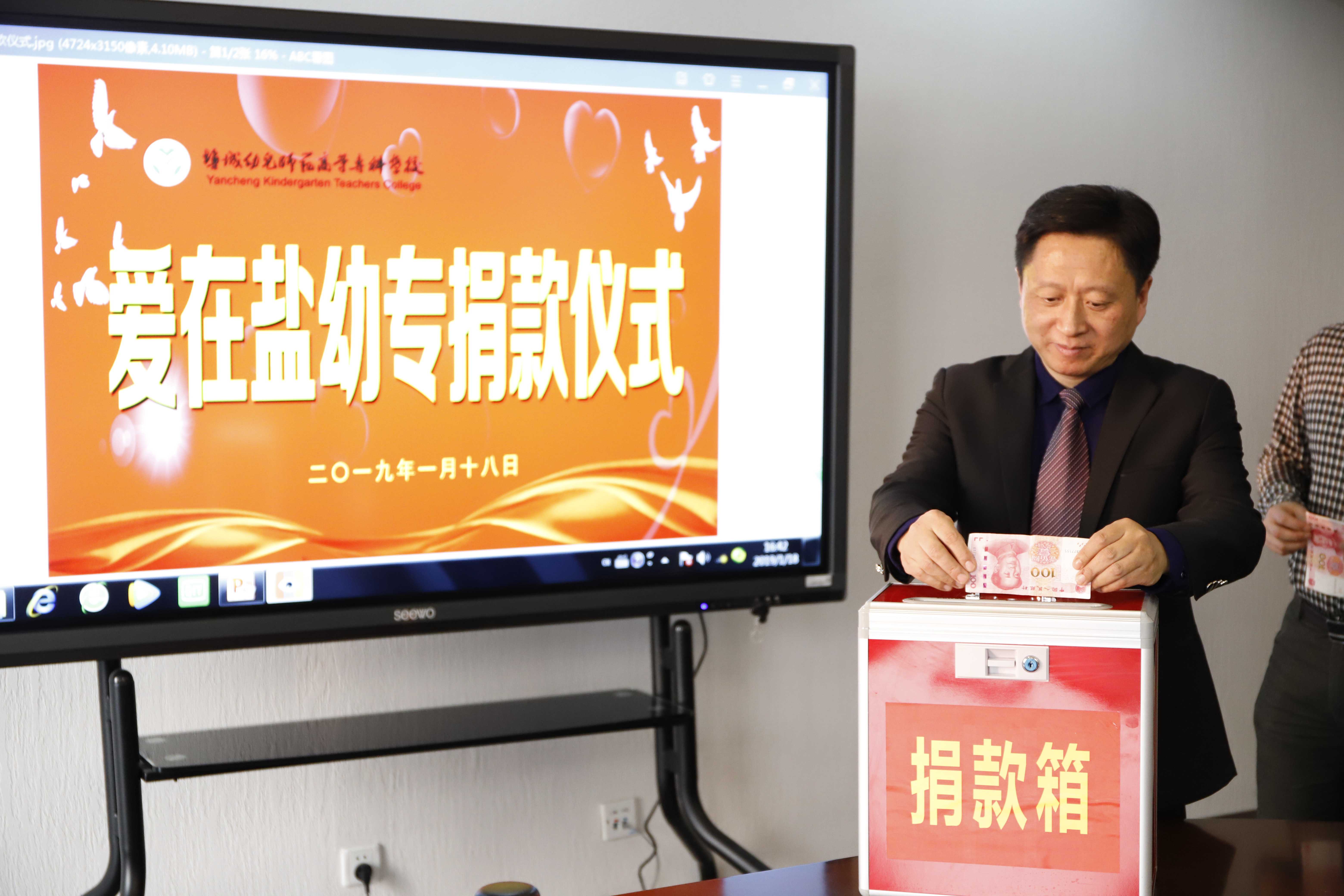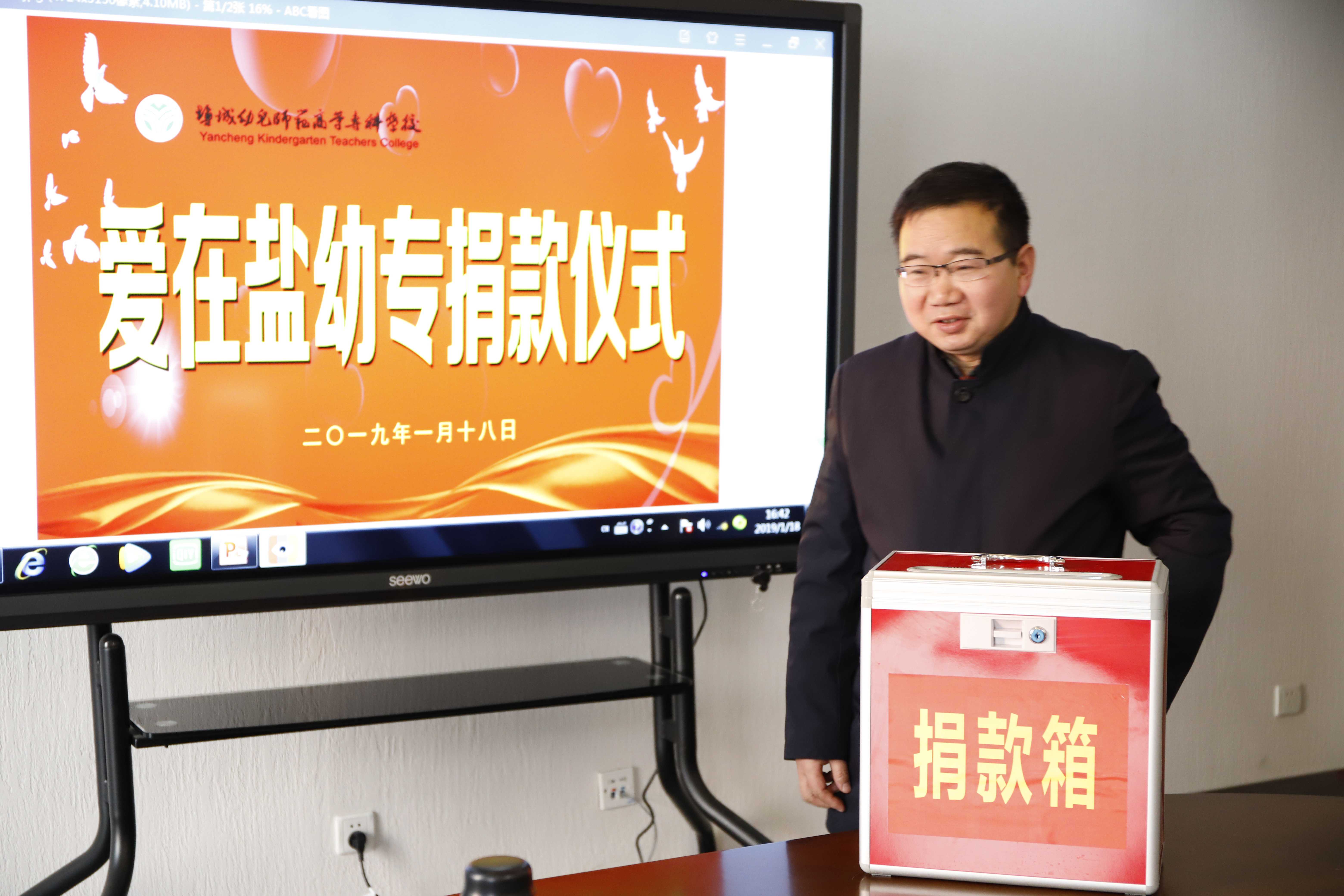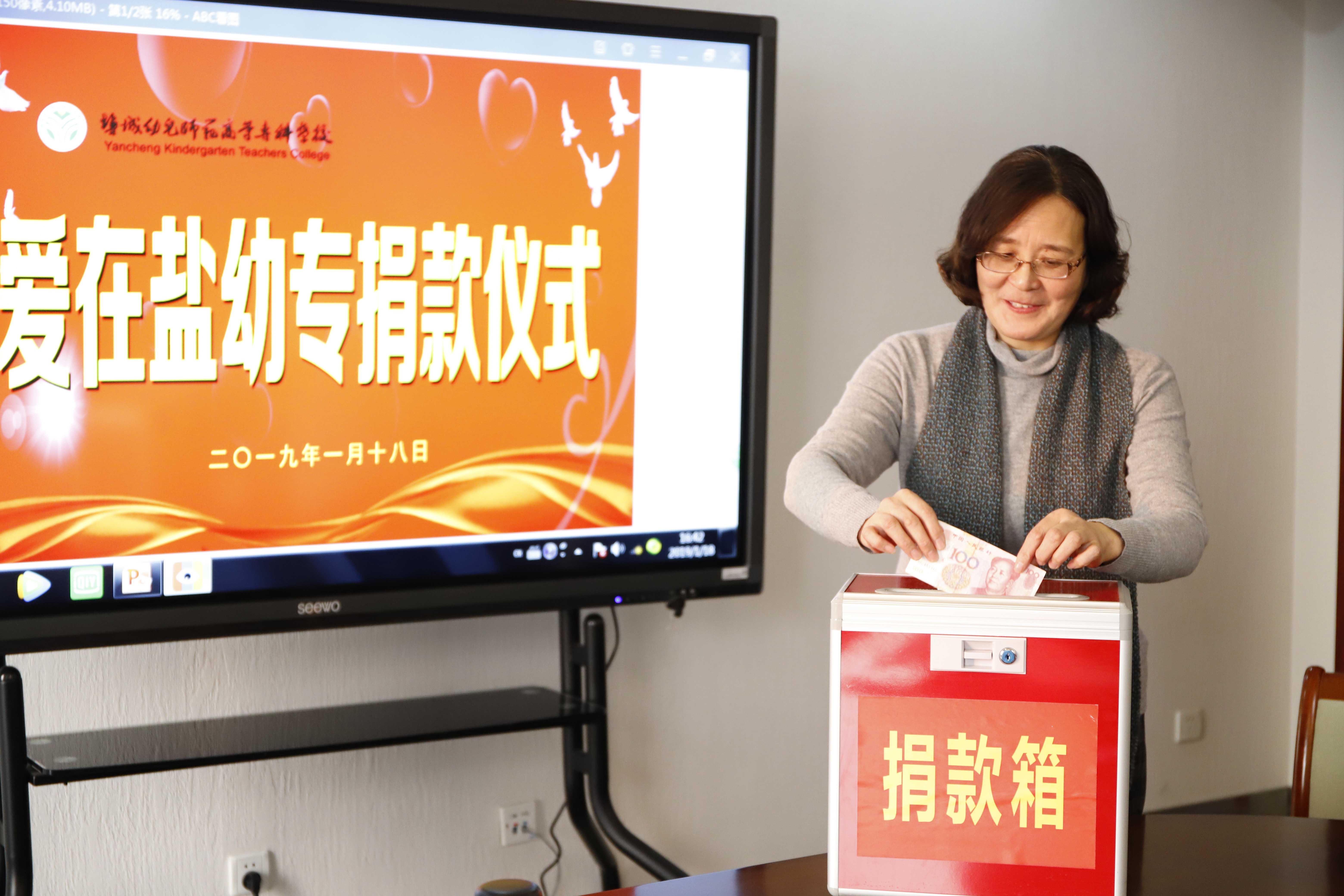 1月18日下午,室外寒气逼人,行政楼五楼中会议室里却温暖如春,在这里,我校学工一条线人员正在开展“爱在盐幼专”捐款活动,为家境贫困的颜同学作爱心捐赠。