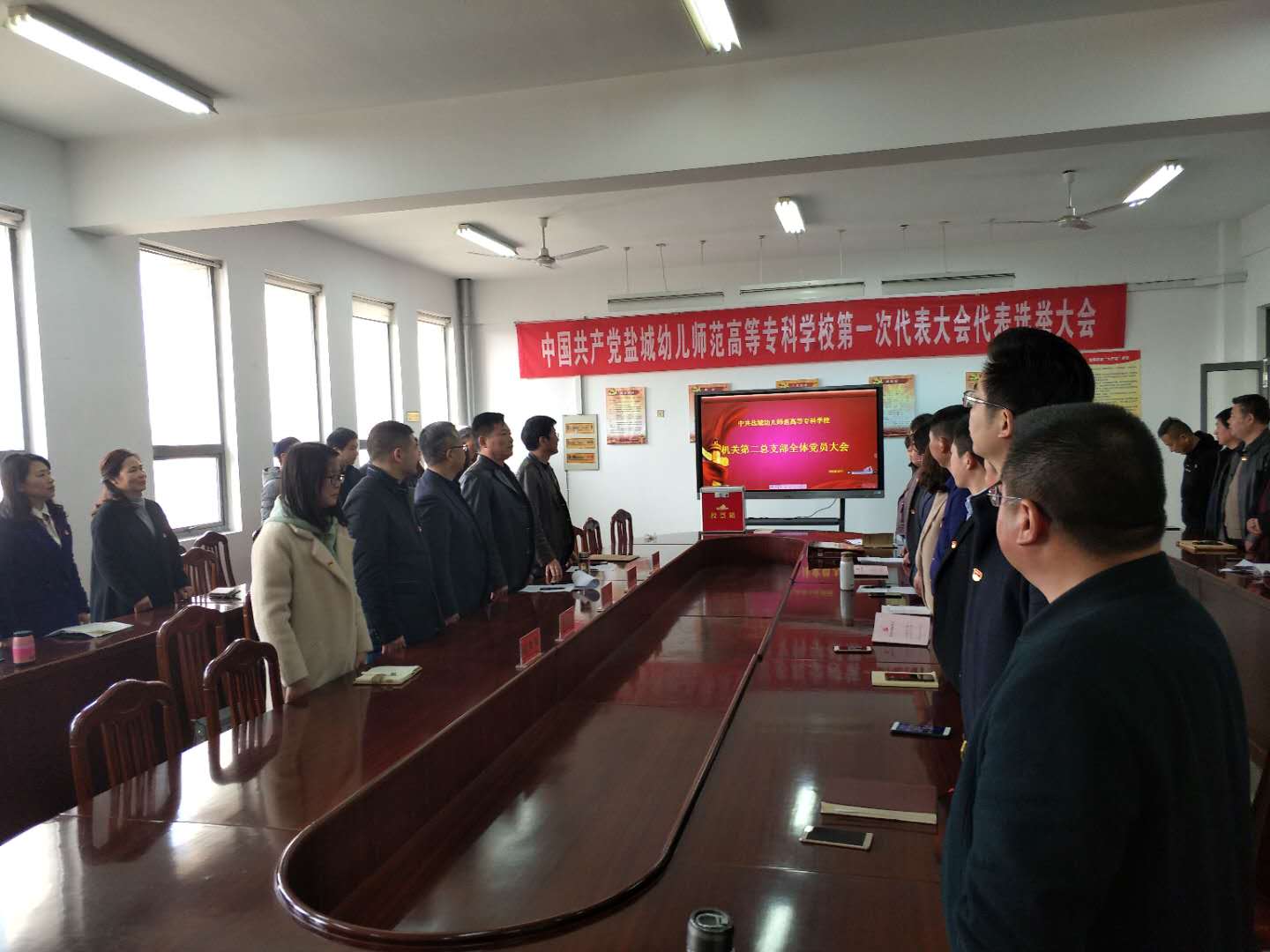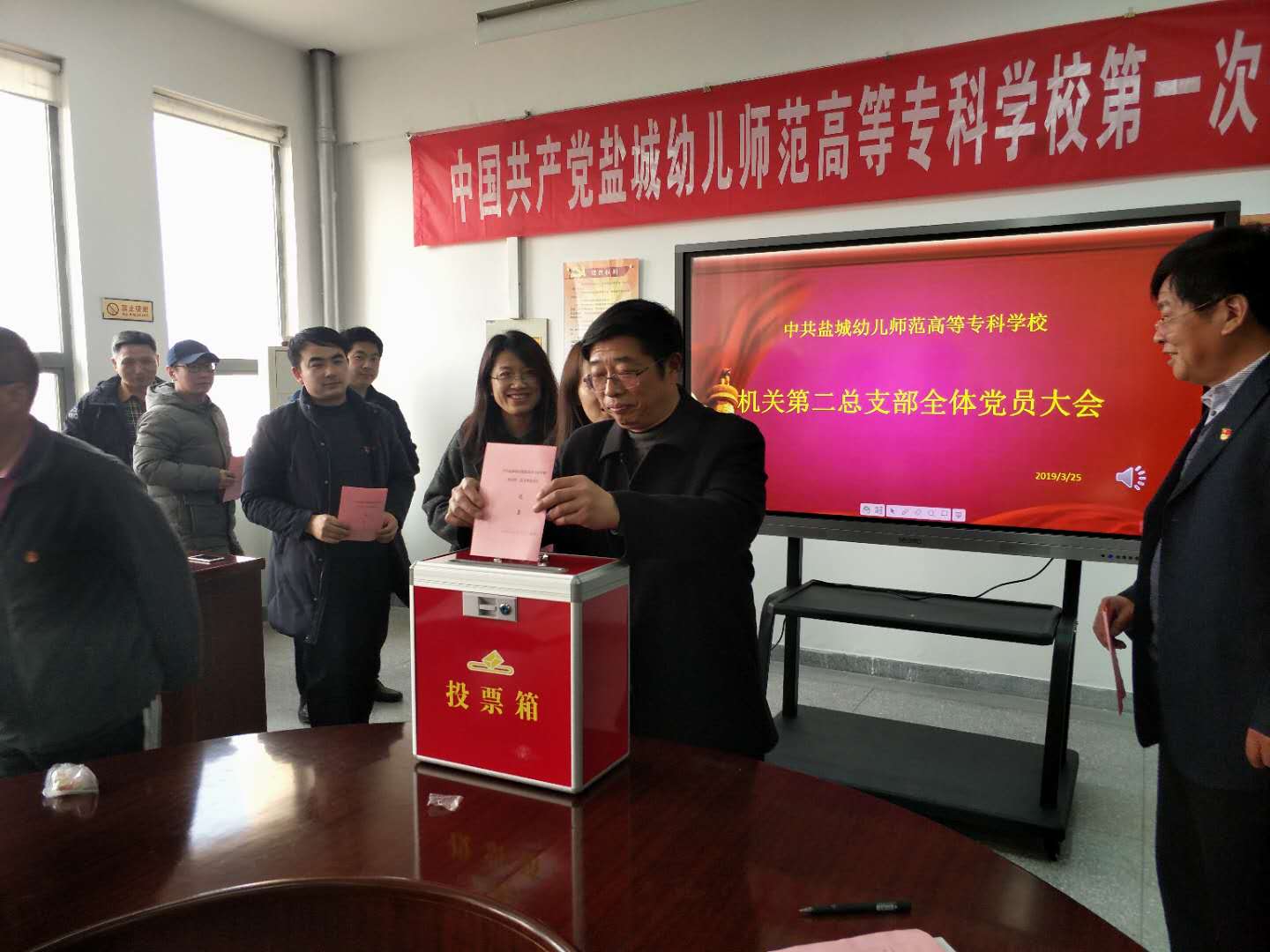 会议在雄壮的国歌声中拉开序幕,学生处副处长张彬宣读了《盐城幼儿师范高等专科学校机关第二党总支委员会换届选举草案》,大会通过了《机关第一党总支换届选举办法》和监票人、计票人名单,选举采用无记名投票方式进行。会议,选举产生了机关第二党总支委员会委员。最后,大会在雄壮的《国际歌》中圆满落幕。