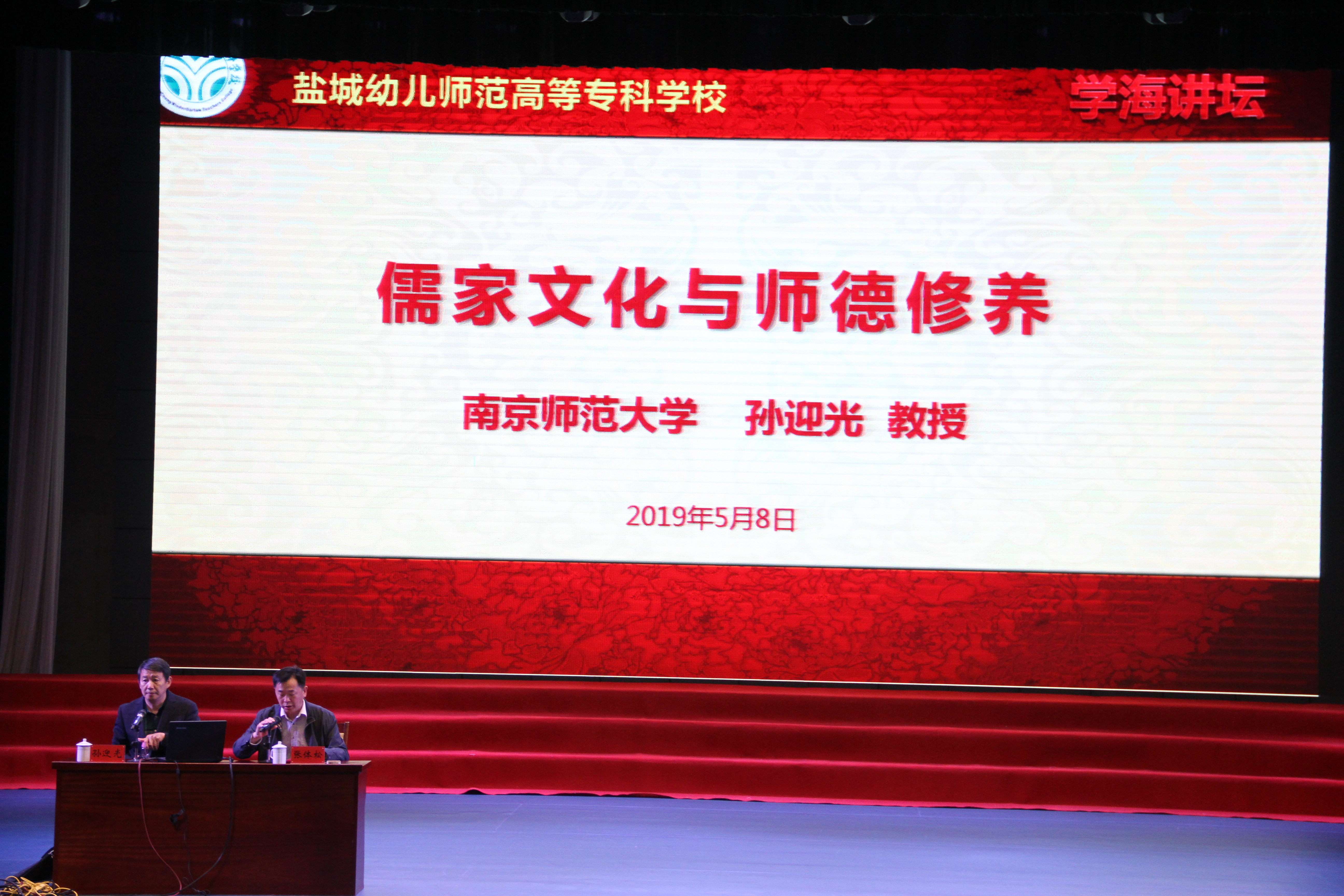 5月8日下午,南京师范大学博士生导师孙迎光教授应邀来到我校海洋路校区鲁艺剧场,为我校600余名师生做了题为《儒家文化与师德修养》的学术讲座。讲座由副书记、副校长张体松主持。