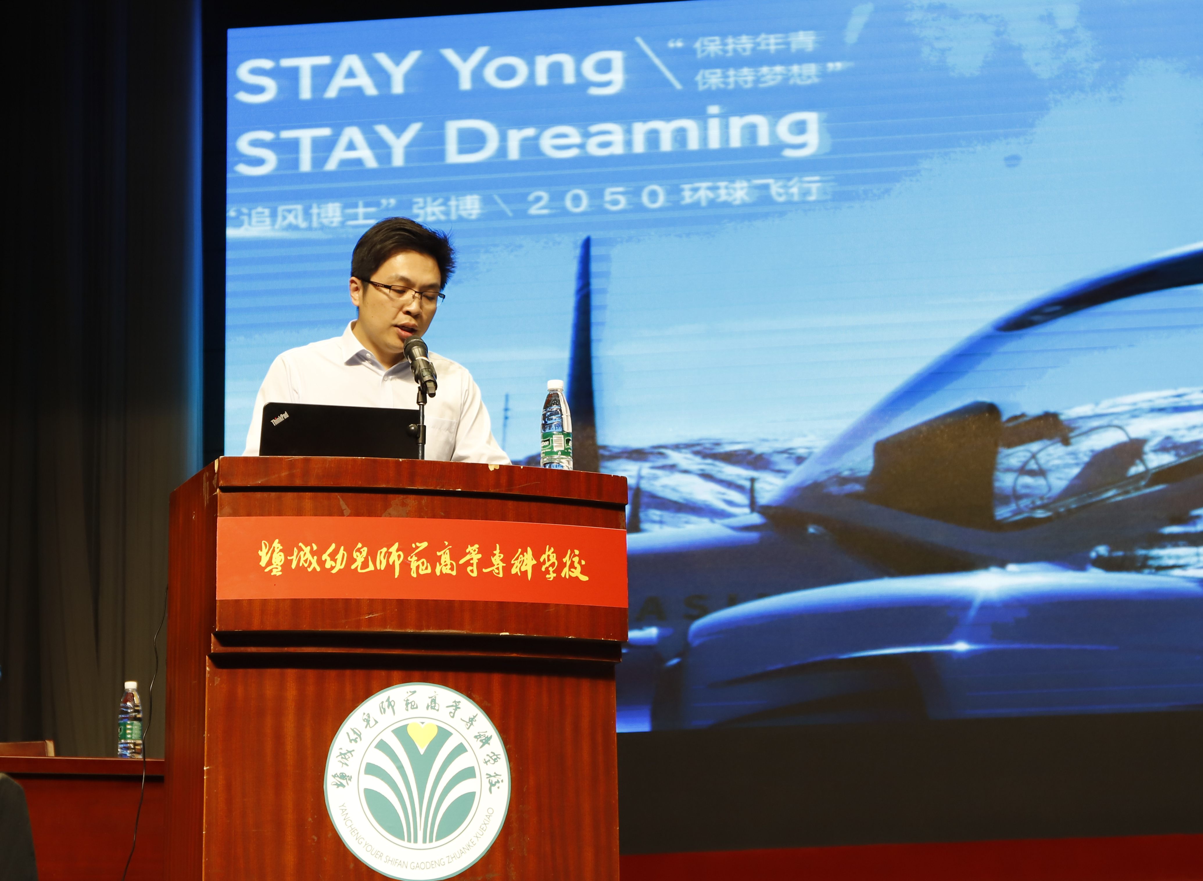 “追风博士”张博驾驶的DA42NG轻型飞机5月24日上午顺利降落在盐城机场,下午,张博士一行就风尘仆仆来到盐城幼专和师生们交流。据悉,张博博士5月25日离开盐城,继续他的第二次环球之旅,经过北京飞往俄罗斯,最后经加拿大飞回起点美国。其间将飞经20多个国家50多个经停点,总航程近5万公里,预计耗时两个月。