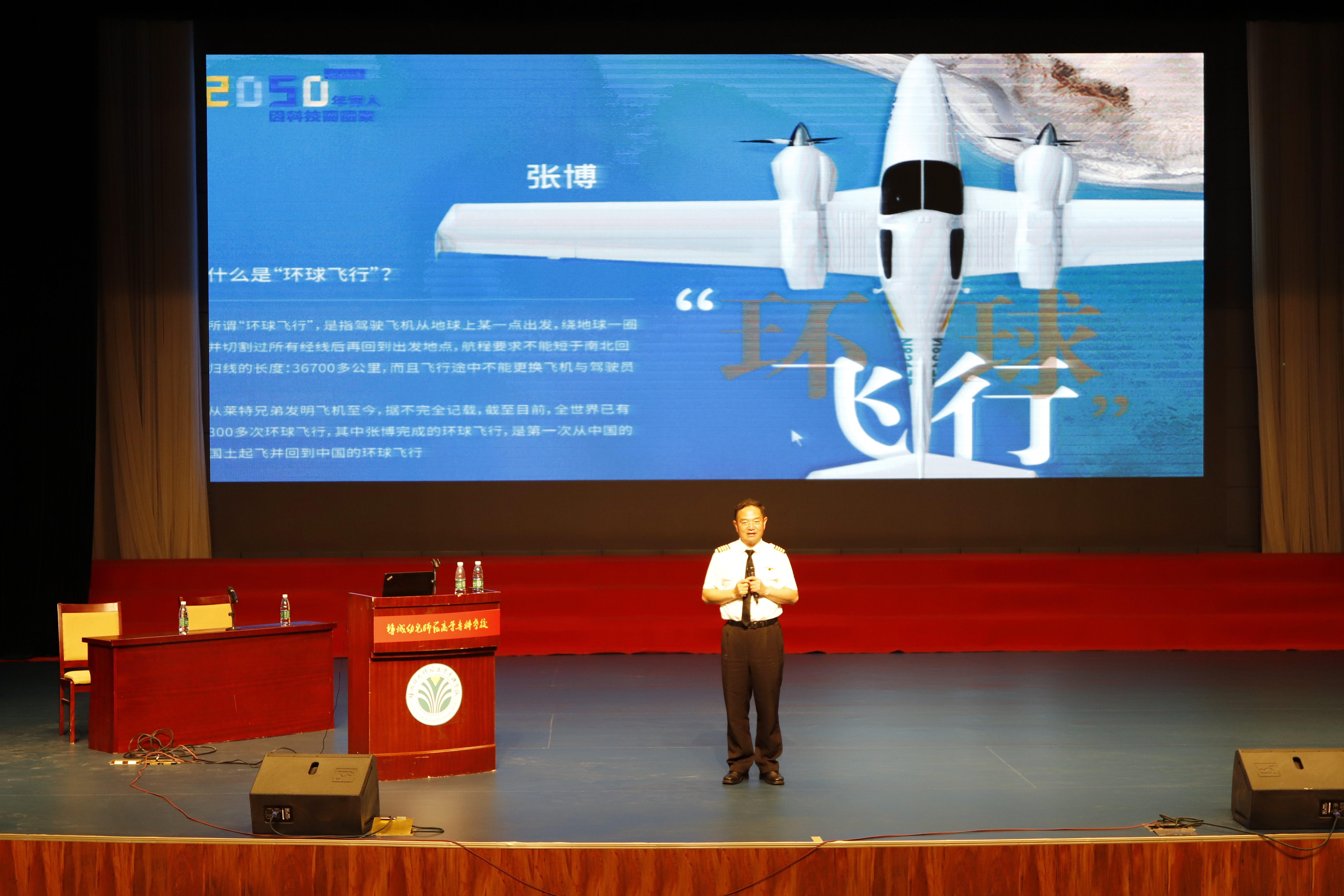 在鲁艺剧场,张博给在场600多名师生做了一场主题为“带着梦想一起飞”的讲座。他首先介绍了4月2号开始的第二次环球飞行2050的起因,详细描述了他从美国芝加哥起飞,经过北极圈、欧洲大陆,沿着丝绸之路飞越土耳其、哈萨克斯坦后飞入中国境内的艰险历程,分享了他在空中领略到的壮美风光和一段段生动而又惊险的故事。张博博士还结合他在海外学习工作的经历,勉励在座的同学树立远大理想,勇于挑战,敢于实践,努力实现自己的人生目标。在座的师生被张博博士的精彩演讲深深吸引,同时也被他实现中华民族百年环飞梦的壮举所折服,现场气氛热烈。