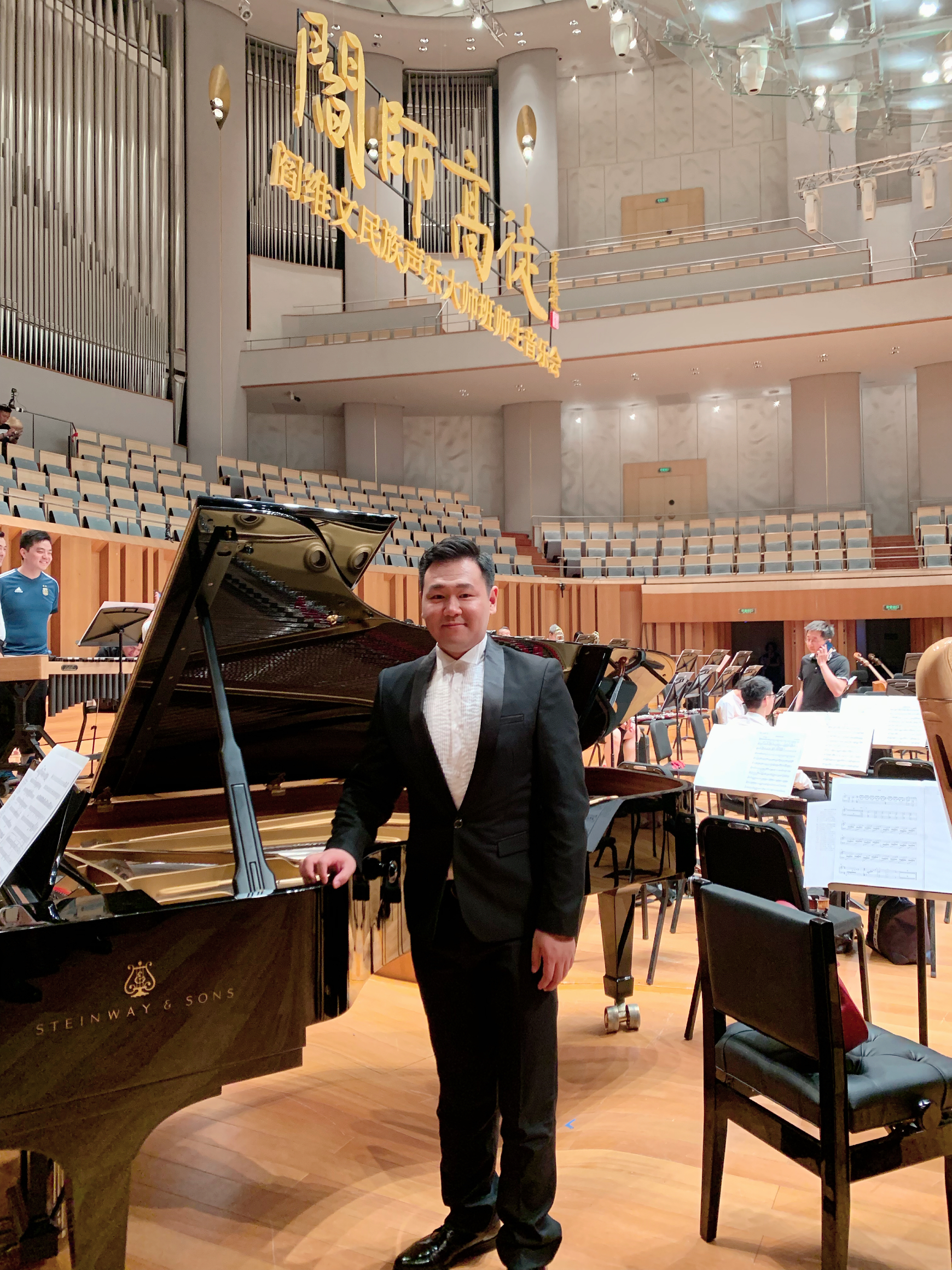 日前,由山西潞宝集团、司麦澳(北京)文化艺术有限公司主办的“阎师高徒”阎维文民族声乐大师班师生音乐会在国家大剧院举行。本场音乐会由中国电影乐团担任乐队伴奏,小提琴家田雪担任乐队首席,著名指挥家彭家鹏执棒。音乐会由中央电视台著名主持人任鲁豫担纲主持。今年是阎维文民族声乐大师班连续第三年在5月23日登上国家大剧院的舞台。著名歌唱家阎维文亲自率队,携手“阎师高徒”一起呈现一场无与伦比的民族声乐盛典。演唱会上顾阳卿老师为阎维文伴唱了《小白杨》、《母亲》、《手挽手》等三首歌曲,获得在场观众长时间热烈的掌声。