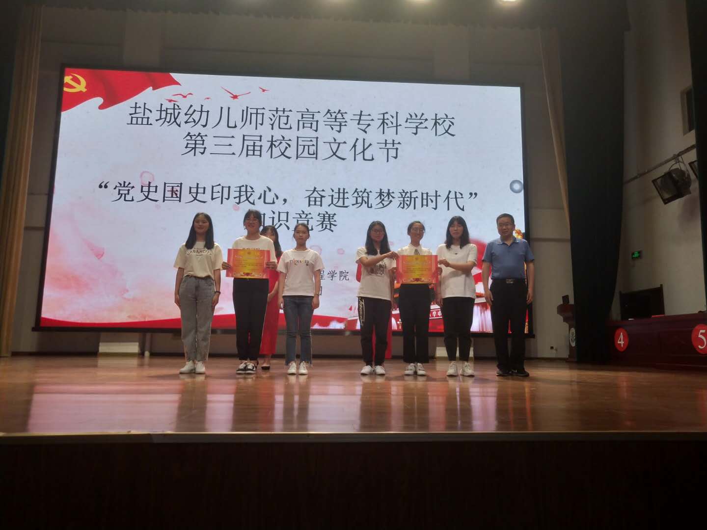 2019年6月18日,盐城幼专第三届文化艺术节“党史国史印我心,奋进筑梦新时代·知识竞赛”活动在学海路校区报告厅隆重举行。本次活动由建筑工程学院承办,我校校领导、中层干部以及南北校区400余名师生共同参加本次活动,观看了演出。