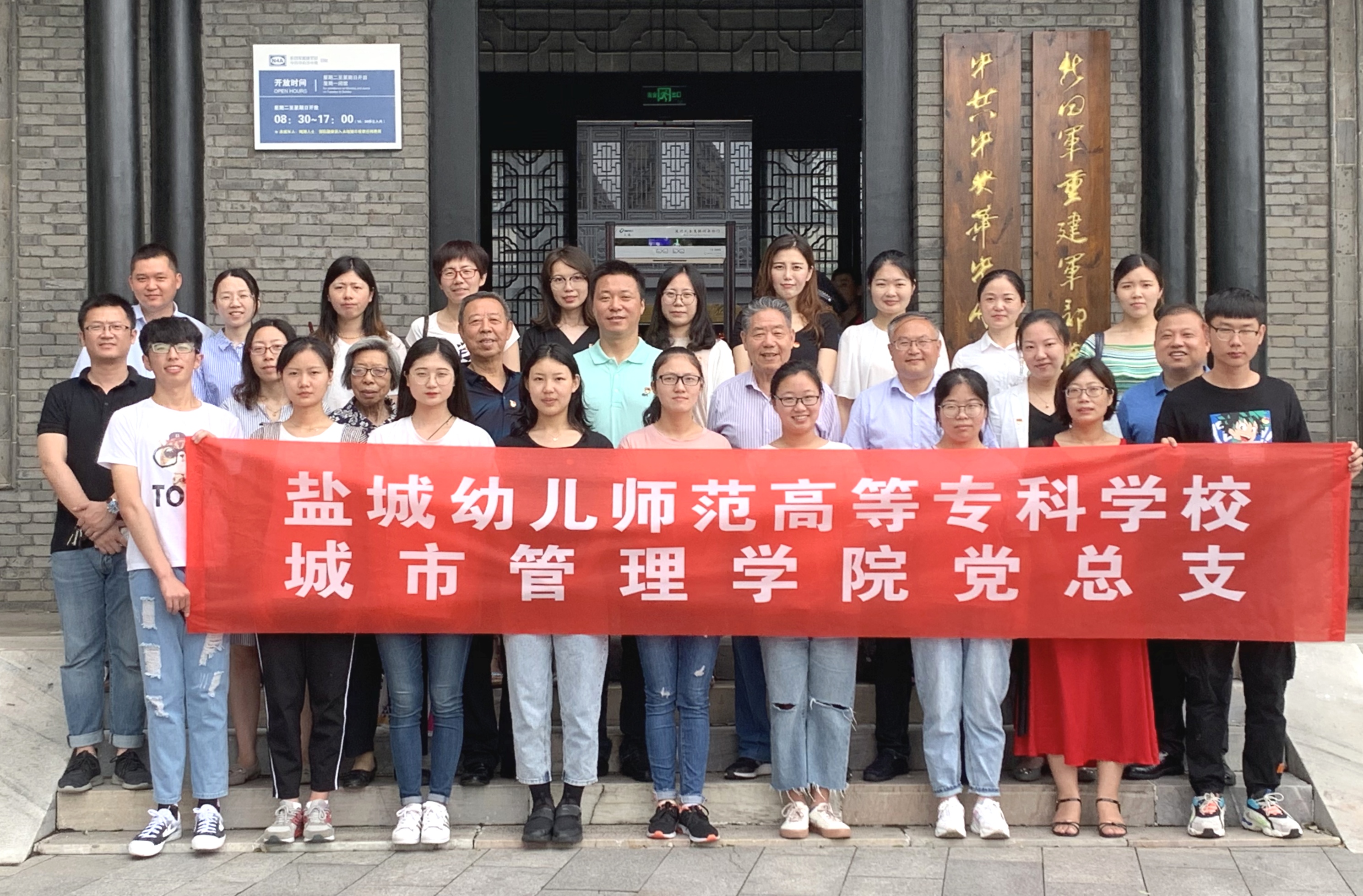 在纪念建党98周年之际,为回顾党的革命光辉历程,学习革命先辈的崇高精神,更好地发挥共产党员的先锋模范作用,城市管理学院党总支带领学院全体党员及部分学生入党积极分子来到爱国主义教育示范基地——新四军泰山庙军部旧址,开展了“参观红色教育基地 重温入党誓词”主题党日活动,邀请了学校关工委常务副主任孟金保,关工委副秘书长王福安,城市管理学院关工委常务副主任魏文元等老党员同志参加活动。