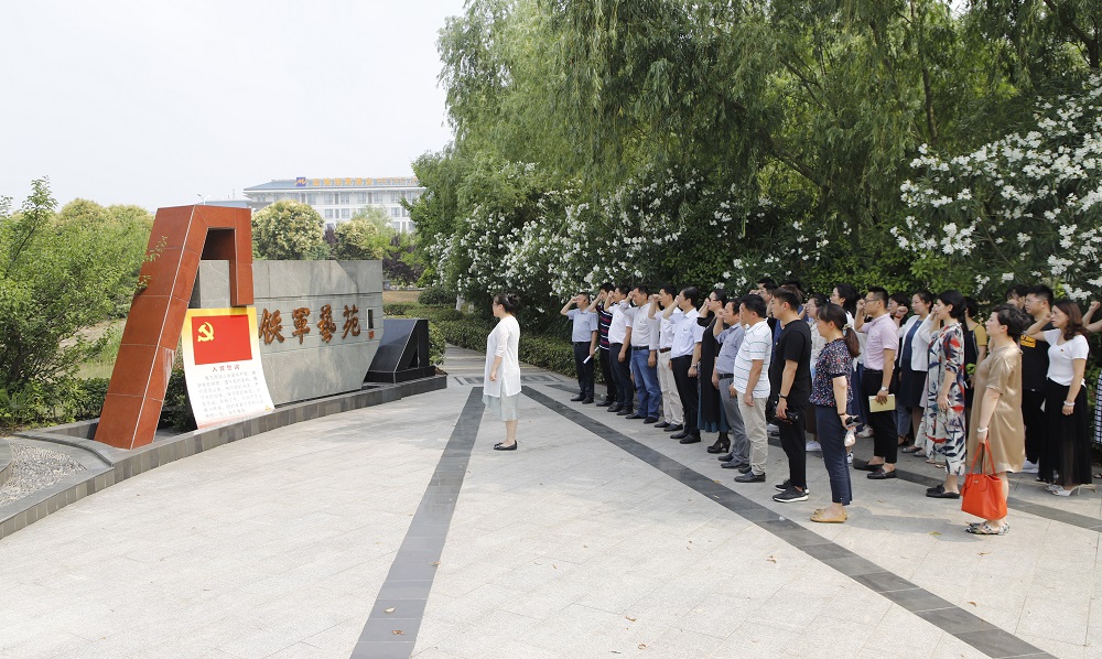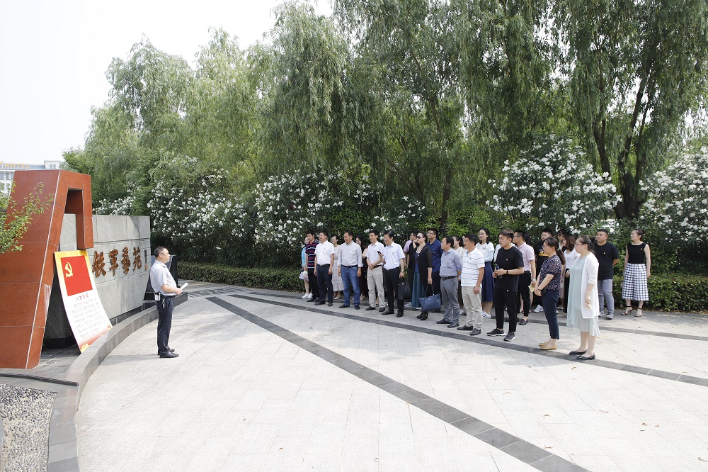本次现场教学活动在海洋路校区铁军艺苑和校史馆举行,鲁迅艺术学院副院长、华中鲁艺研究所副所长陈德田担任本次现场教学的主讲。他以详实的史料,深情的口吻向大家介绍了新四军“N4A”标识的由来,华中鲁艺成立的历史背景、机构设置、办学情况及刘少奇、陈毅等老一辈革命家的丰功伟绩。期间,穿插介绍了荡气回肠的九女投河的英雄事迹,邱东平、许幸之、莫朴、贺禄汀等艺术大家创作成就。通过现场教学,在场的全体党员干部深刻认识了华中鲁艺短暂而辉煌的办学历史,在吸引进步青年走上革命和抗日道路,传播新思想、新文化,推动苏北盐阜地区文化发展,培养军队和基层文艺骨干方面所发挥的巨大作用。在铁军艺苑入口处,全体参加活动的党员还一起重温了入党誓词。