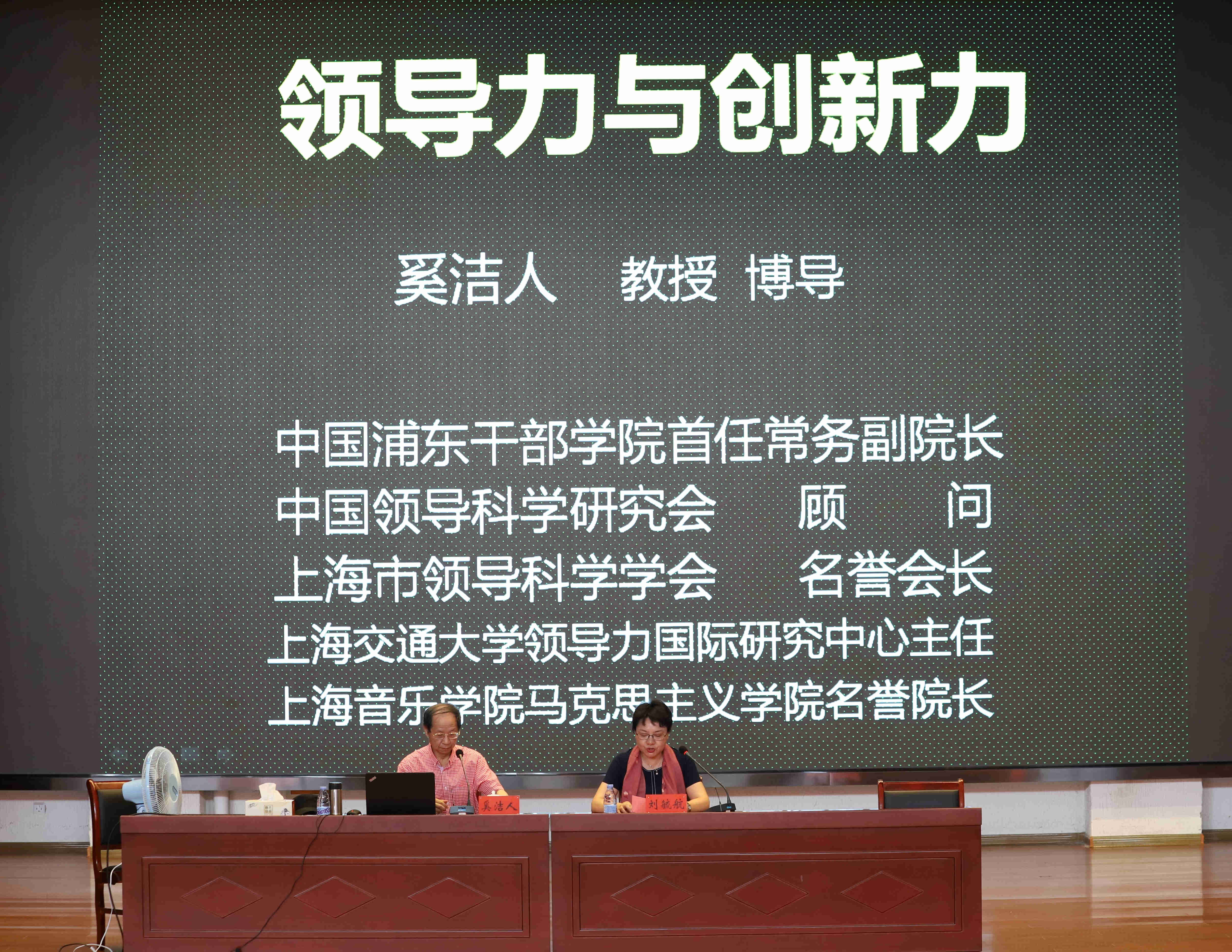 8月6日上午,上海市习近平新时代中国特色社会主义思想研究中心研究员、教授、博士生导师,中国浦东干部学院首任常务副院长、上海市领导科学学会名誉会长、上海交通大学领导力国际研究中心主任奚洁人受邀作题为《中国共产党的首创领导力》的讲座。学校党委书记刘毓航主持会议,全体中层以上干部、科级副职人员、思政课教师、辅导员参会学习。