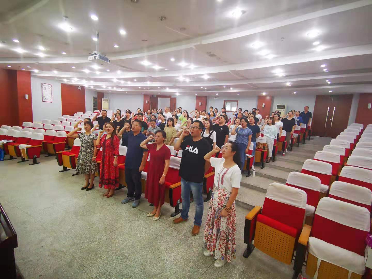 8月31日下午4时,全院教师在校图文信息中心一楼报告厅召开2019年秋学期师德师风教育承诺宣誓会。会议由党总支副书记严东同志主持,参加会议的学院领导有邓晓玲院长、朱文会副院长、朱明副院长、孙晓姝副院长。