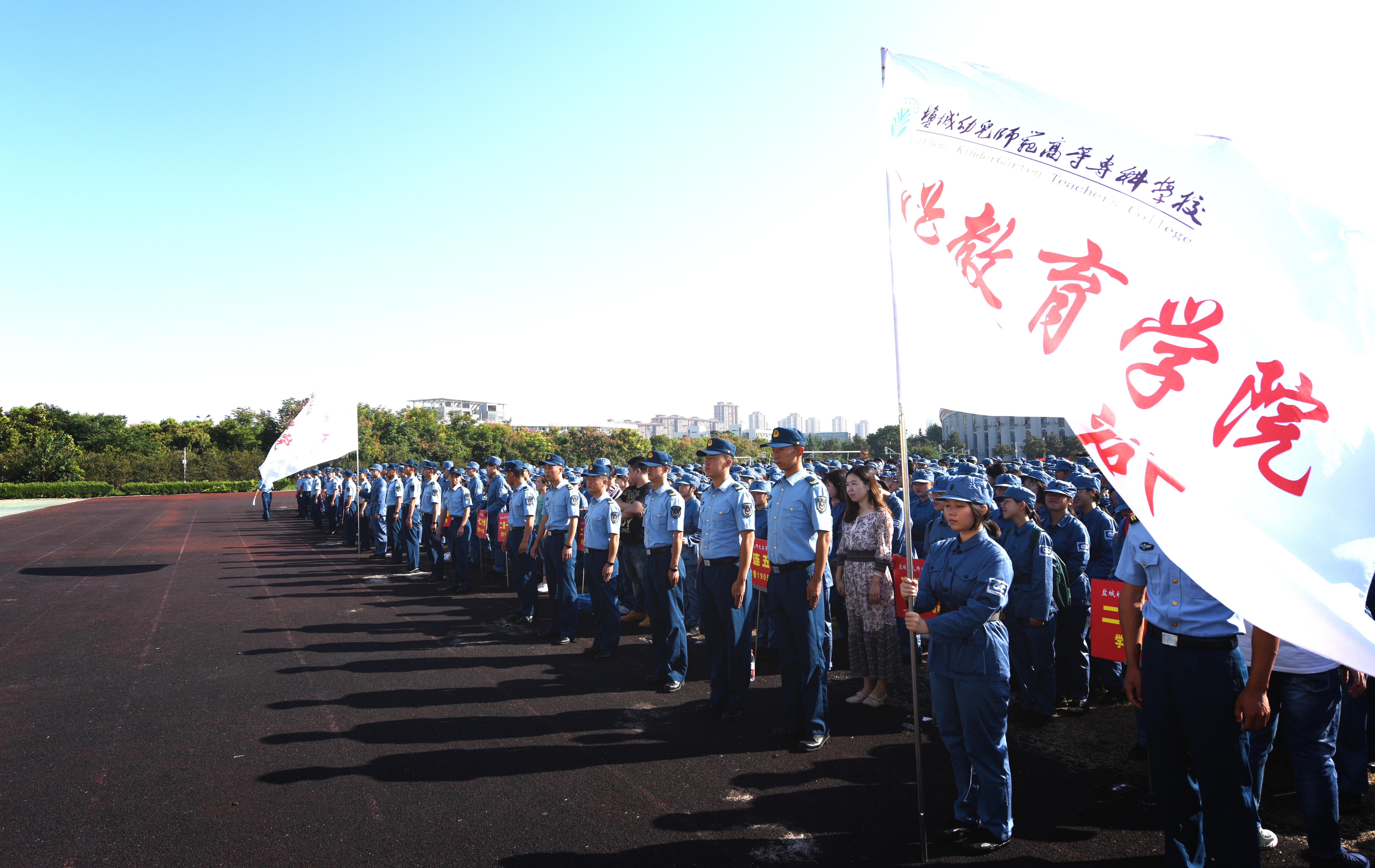 最后,校党委书记刘毓航宣布盐城幼儿师范高等专科学校2019级新生军训正式开营。