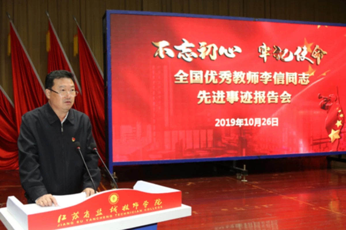 据悉,本次先进事迹报告会是在全市上下“不忘初心、牢记使命”主题教育扎实开展之际召开的一次学先进典型、学身边榜样的重要会议,也是我校主题教育活动的重要内容之一。盐城技师学院、盐城生物工程高等职业技术学校领导班子成员、全体中层干部以及部分学生代表也参加了此次会议。
