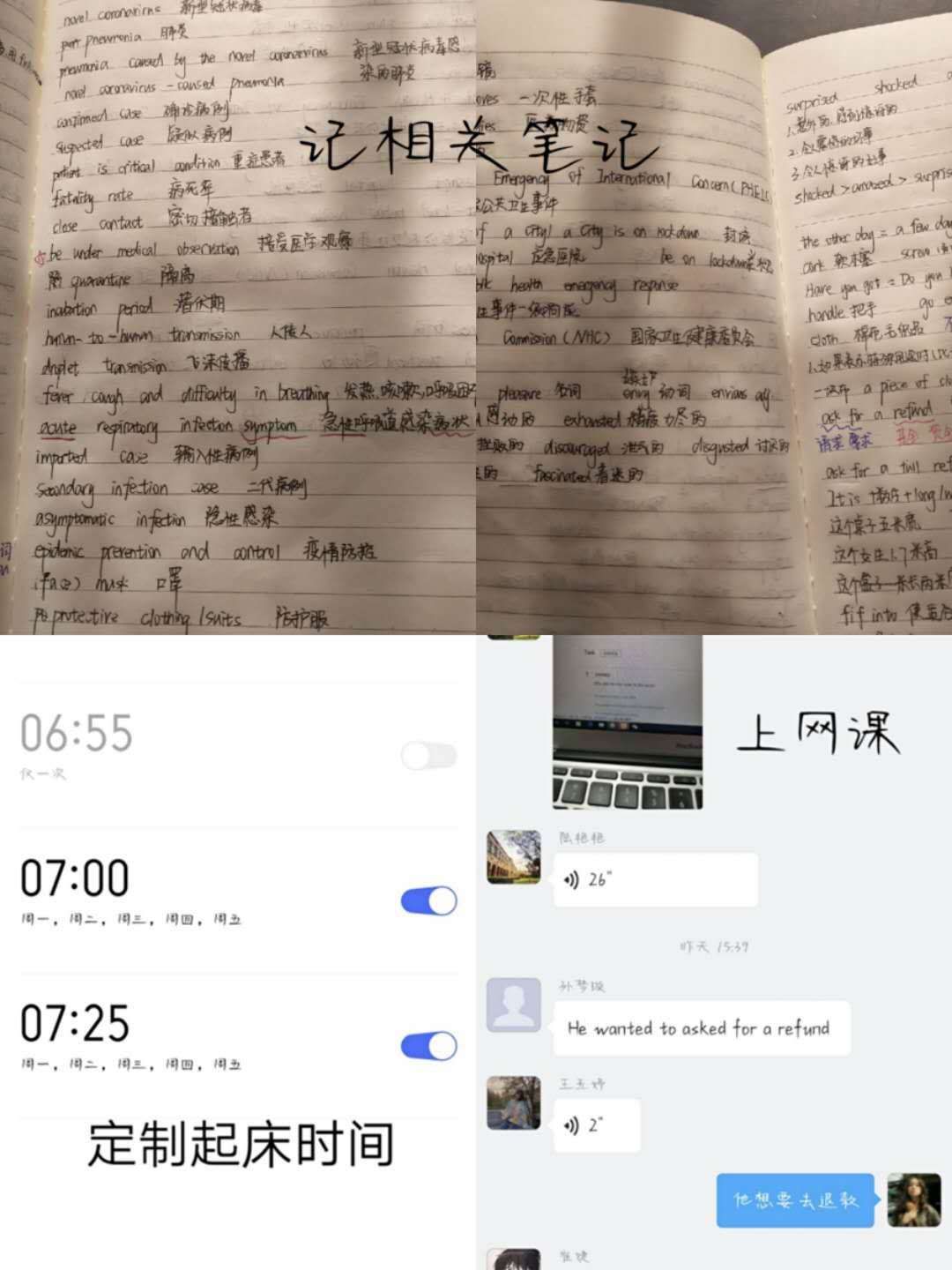 为做好在线教学工作,各教研室研讨调整授课计划,细化教学活动方案,深入研究教学内容,学习线上教学手段,共享教学资源。老师们精心备课,设计学案,深夜错峰上传教学资料,准备多套预案,力求高质量教学。同学们往返于各类线上APP,认真上课。师生参与线上任务发布接收、签到,教师直播录播讲解、在线讨论答疑、作业批阅等教学活动兢兢业业,乐此不疲;身处“万物互联时代”的学生们则表示,疫情锁住了我们的脚步,却困不住我们对知识的渴望,足不出户的听课并且与老师线上互动,点对点的交流,不仅培养了他们学习的主动性,也增进了师生间的感情,一定更加努力学习,不负韶华。