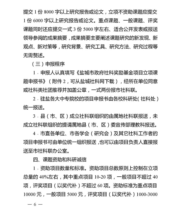 2020年度盐城市社科基金项目申报工作已开始,请各学院、部门按要求组织项目申报人认真填写《申报书》,并对申报人的申报资格和填报内容进行初审,经学院初审后,按照所在学院副高级职称人数15%确定推荐参评项目数量,并于2020年3月23日前将申报书(按照学院+申报人姓名+学科+课题名称命名)和《申报一览表》电子稿各1份发送科研处邮箱keyanchu415@163.com。