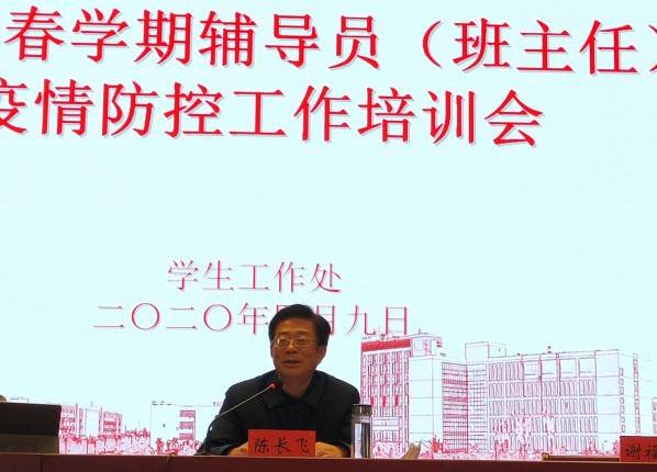 会上,谢福华处长就学生返校途中及返校后的防护措施,陈红处长对学生返校后的日常清洁、通风消毒和食堂就餐,李鹏书记对新学期疫情防控期间学校团委相关工作的开展分别进行了布置和说明。张彬处长带领全体与会人员学习了《2020年春学期师生返校疫情防控工作培训手册》,重点就开学期间疫情防控常见的20个问题处置进行了系统介绍;详细解读了春学期学生返校工作方案,就返校申报、信息摸排、宿舍管理、体温检测、制度执行、学生心理调适等辅导员(班主任)日常防疫工作事项及操作程序一一说明。