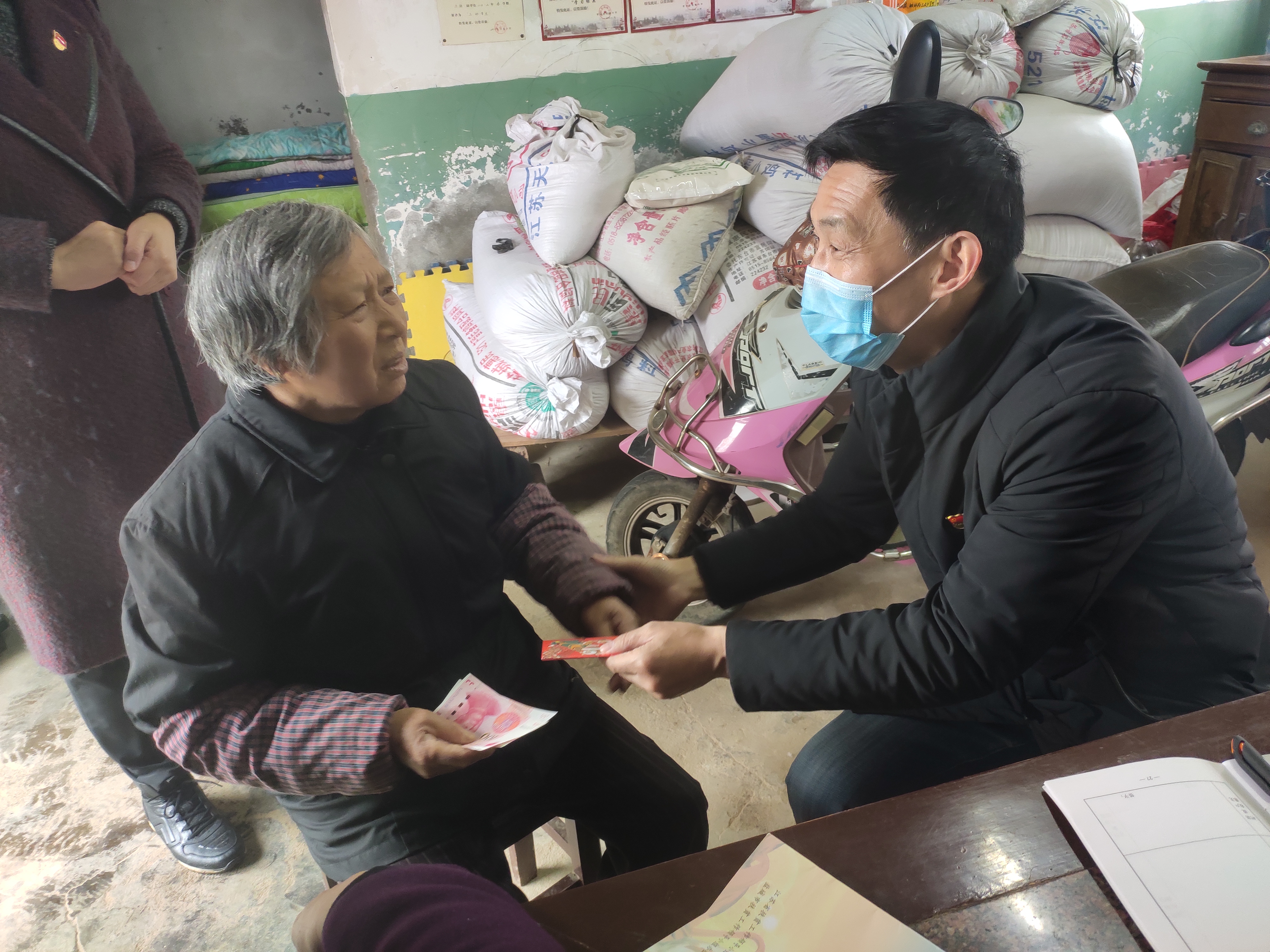 马力书记向农户发放慰问金