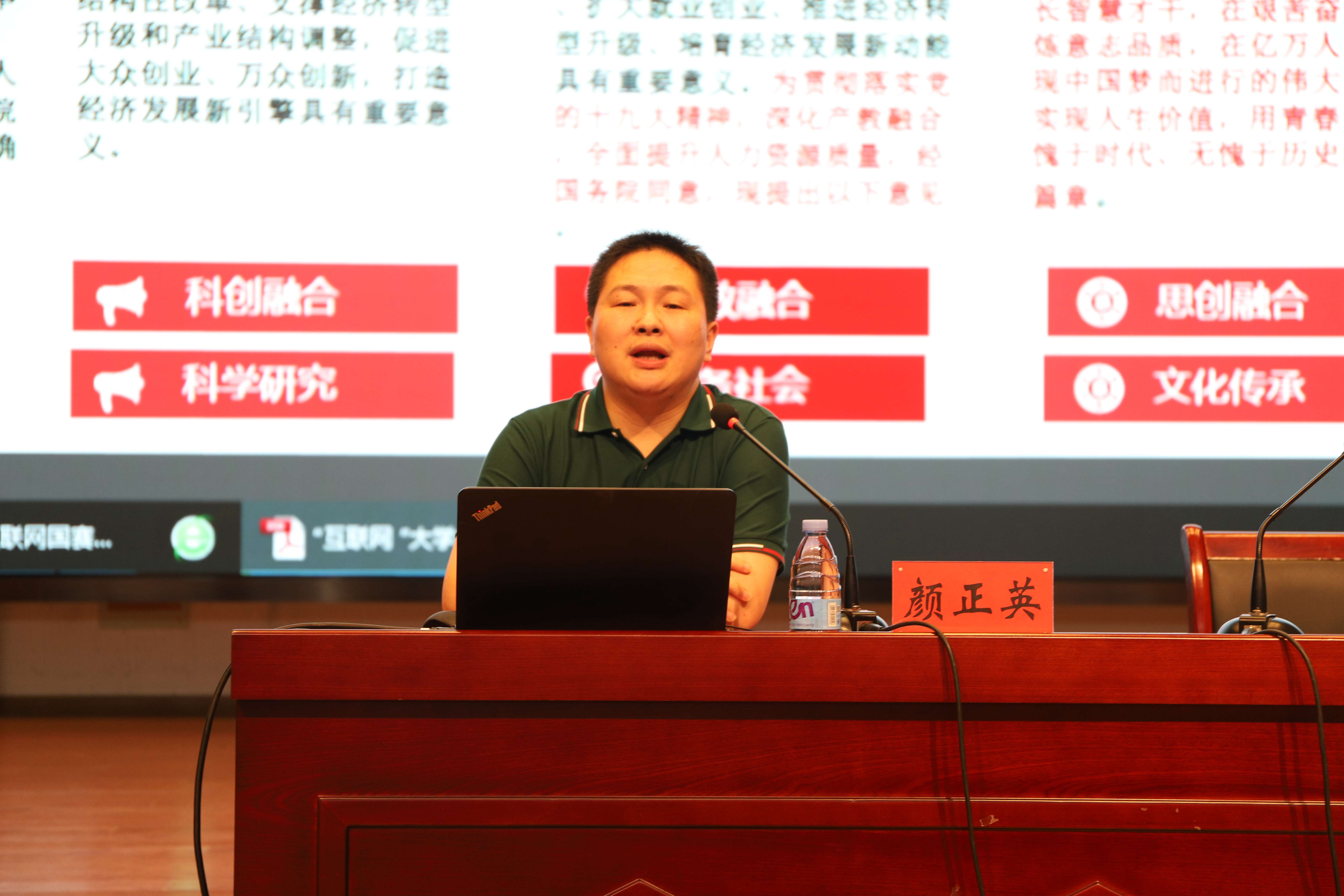 为进一步提升教师竞赛指导能力和学生创新创业水平,充分备战江苏省“互联网+”大赛,6月13日,校团委邀请扬州工业职业技术学院创新创业学院院长颜正英为我校师生作《互联网+大赛文件解读与备赛经验》专题讲座,各学院党总支书记、分管学工院长、团总支书记、全体辅导员和参赛指导老师一同聆听了本次讲座。讲座由校团委李鹏书记主持。